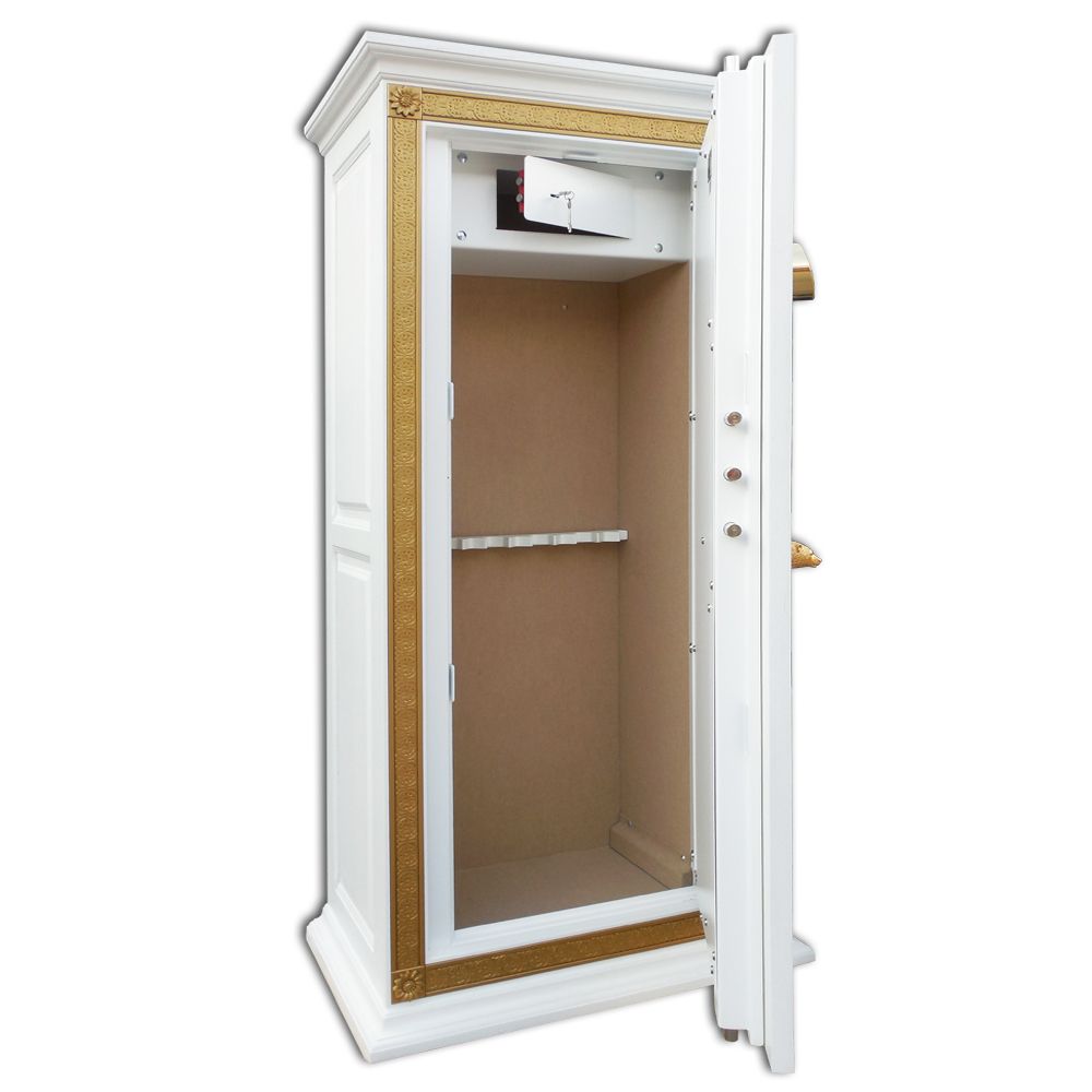 Оружейный сейф Metalk Araldo 1706540 ВТ Barocco изготовлен с глухой не остекленной дверью, оснащен внутренним запираемым отделением и полкой для ценностей.