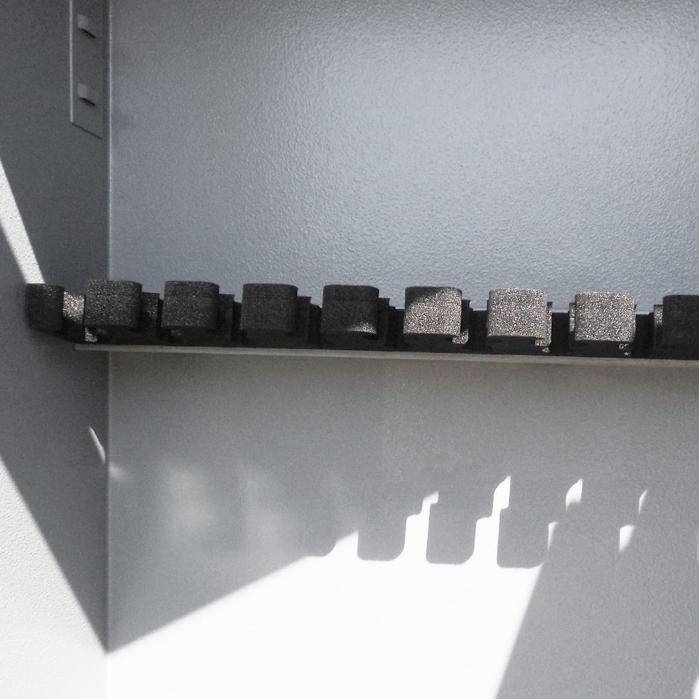 - Внутри располагается трейзер (отдельно запираемое отделение для боеприпасов) и одна съемная полка, которую можно переставлять по высоте.