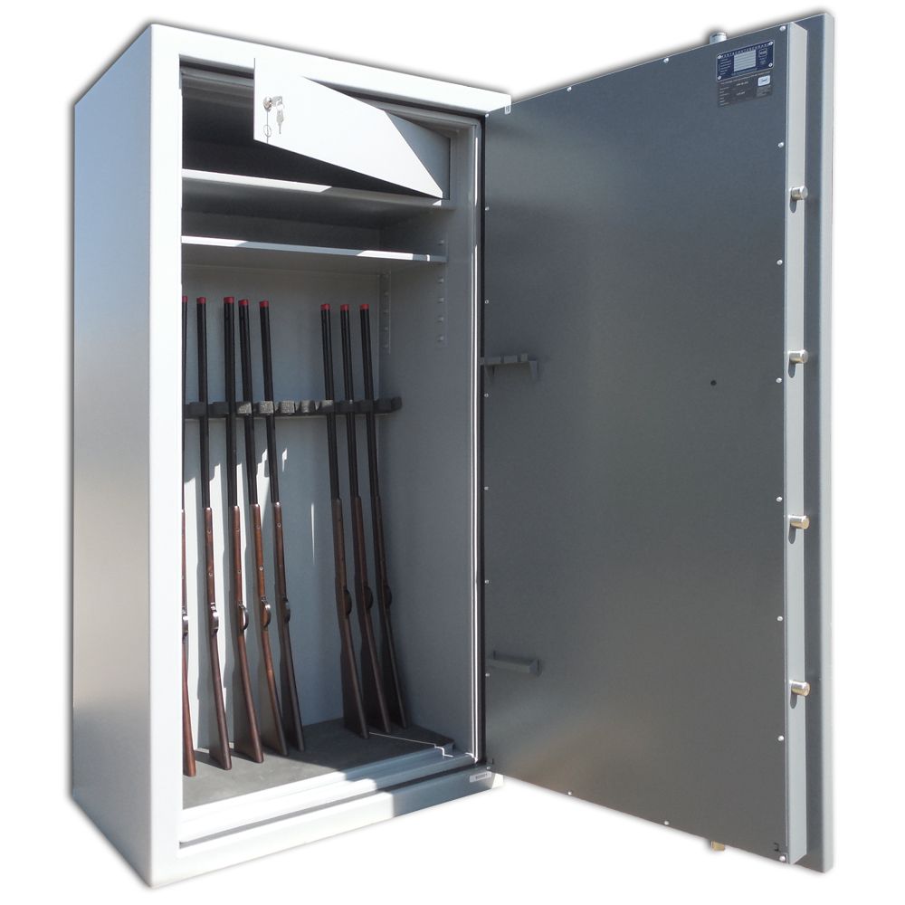- Сертифицированный в Европе огневзломостойкий оружейный сейф, предназначен для хранения оружия (до 13 ружей) и боеприпасов к нему.