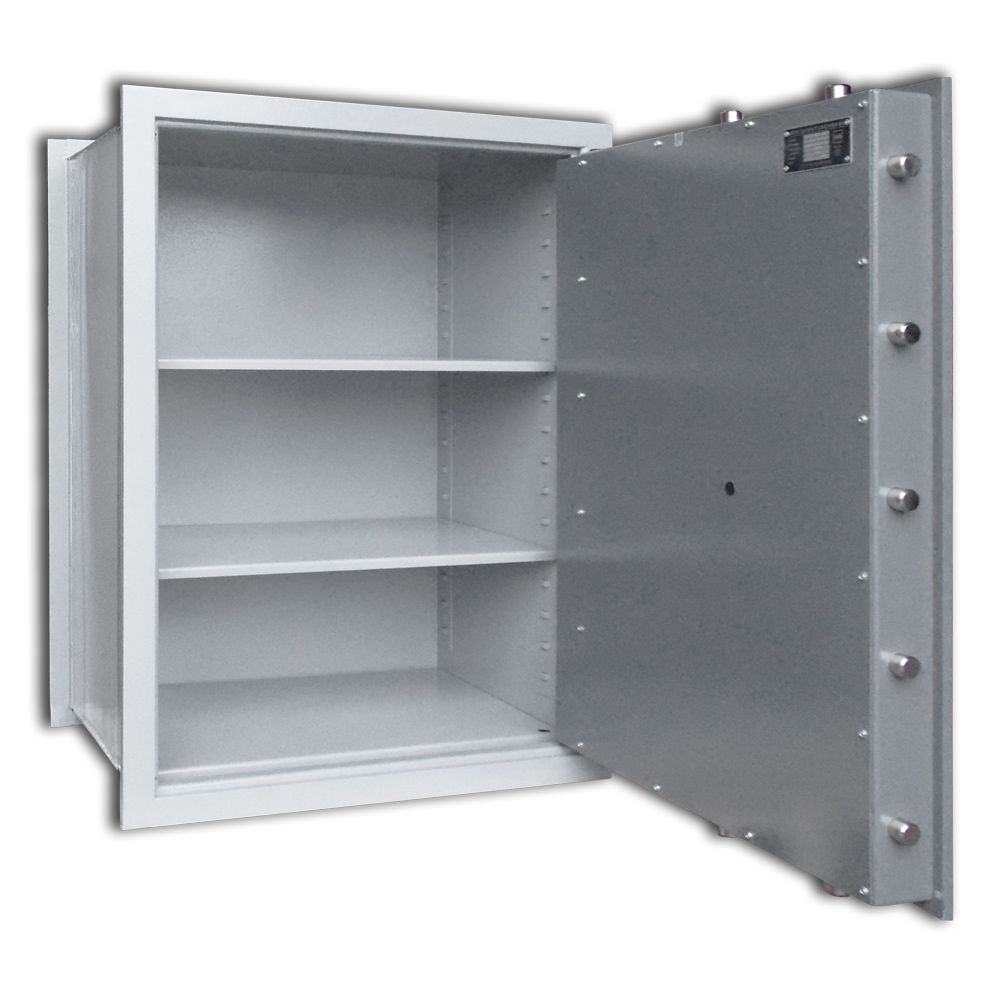 - Надёжность сейфа достигается за счёт использования массивной двери общей толщиной 84 мм. с 12-миллиметровой панелью из высокопрочной стали, а также усиленных петель.