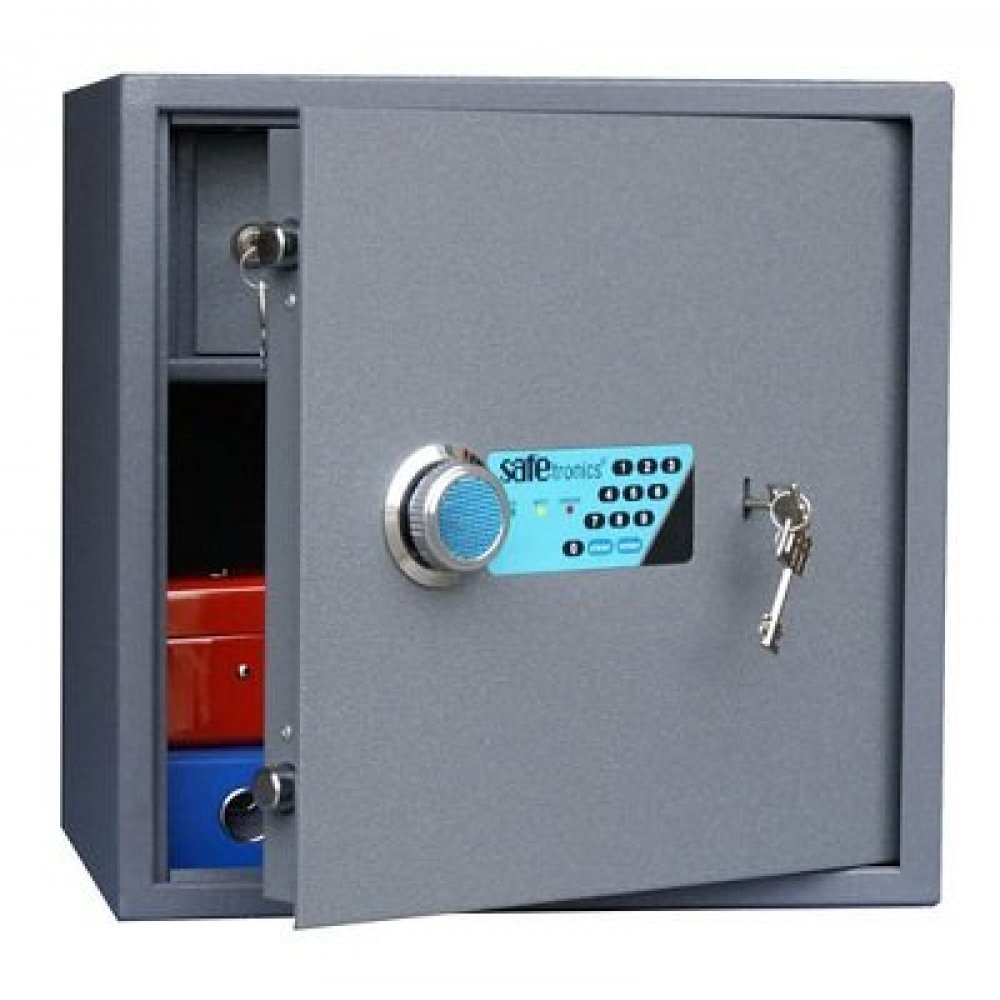 Сейф предназначен для хранения документов дома и в офисе. Взломостойкий сейф 0 класса. Толщина двери составляет 5мм. Задняя и боковые стены из стали толщиной 2,5мм. Взломостойкие сейфы оснащаются электронным замком (Словакия) и ключевым замком MAUER (Германия). Сейф может быть закреплен к полу или стене. Полка регулируется по высоте.