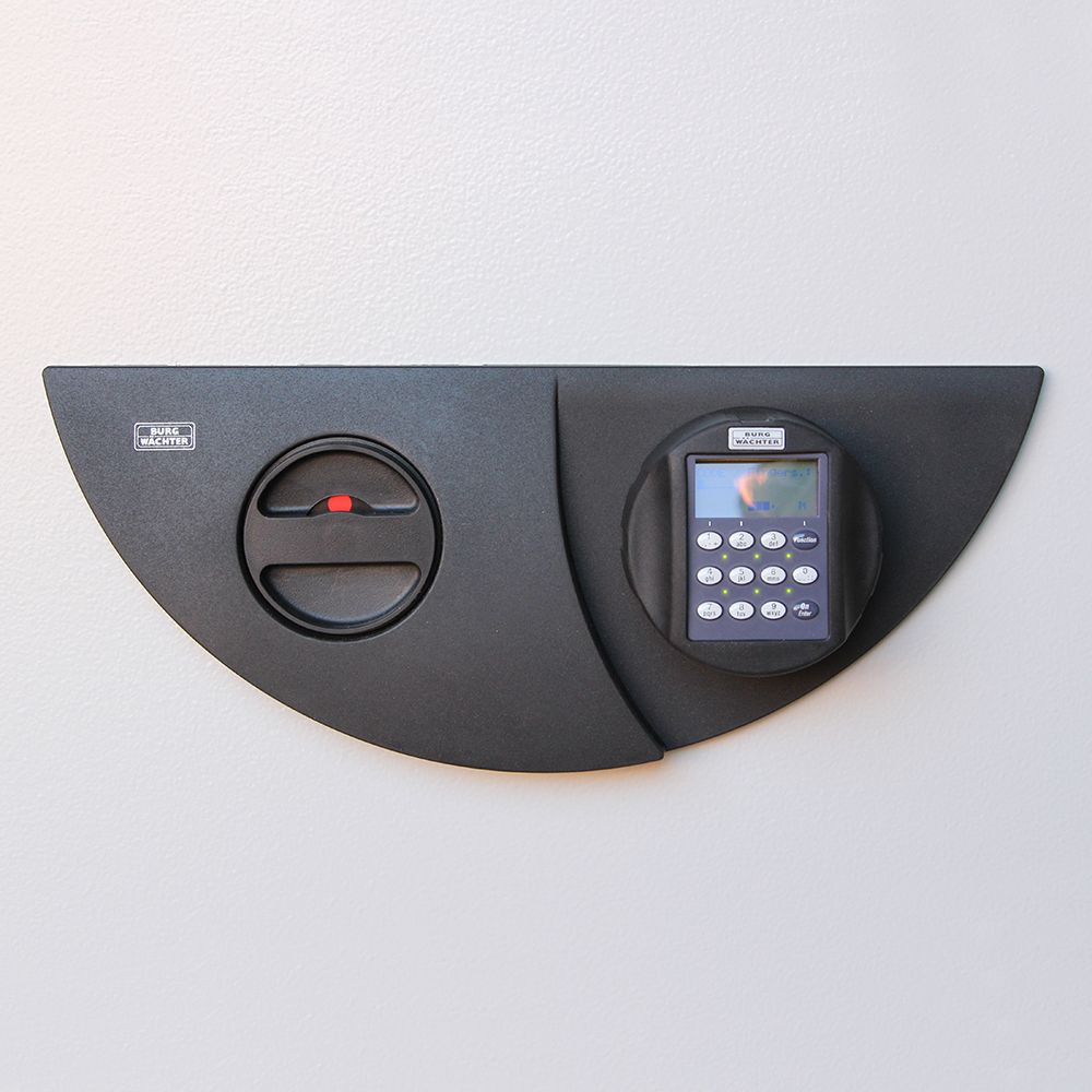 Известное немецкое качество воплощено в новом сейфе компании Burg-WACHTER, которая долгие годы помогает людям хранить ценные бумаги, деньги и драгоценности. Сейф с электронным кодовым замковым механизмом гармонично дополнит офисное или гостиничное помещение. Стильный сейф надежно спрячет все ценности и защитит их от вредных внешних воздействий и агрессивной среды. • Свободностоящие сейфы для хранения ценных вещей • Проведение типовых испытаний и контроль безопасности со стороныECB.S/VdS(органы сертификации систем безопасности) • Защита от пожара и взлома • Двустеночный корпус • Двустеночная дверца • Надежная трехсторонняя фиксация посредством цилиндрических ригелей толщиной 28 мм; дополнительные неподвижные ригели с петлевой стороны в качестве подпорки • Предусмотрено крепление к полу, крепежный материал поставляется в комплекте. Одно отверстие находится в центре днища • Глубина рассчитана для хранения папок, съемная полка, возможна поставка с внутренним сейфом • Серийные модели со светло-серым покрытием RAL 7035, черная передняя панель • Дополнительная безопасность: Несбрасываемая система аварийной блокировки, встроенная в дверной механизм Модификация E Программируемый электронный кодовый замок «SecuTronic» со встроенным модулем сканирования отпечатков пальцев. Класс 2 согласно VdS. Понятное руководство пользователя. Существует возможность запоминания до 10 шестизначных паролей, до 20 отпечатков пальцев и до 300 опциональных электронных ключей. Имена пользователей, время и права доступа к сейфу, календарная функция и т.д. могут быть установлены при помощи дополнительного программного обеспечения для ПК. 2 батареи MignonLR 6 AA в комплекте. Дверная ручка выдвигается на 50 мм