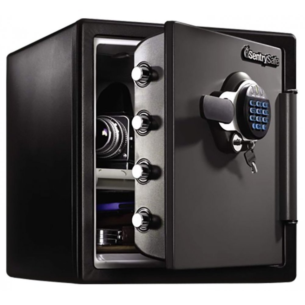 В отличии от остальных, размеры этого сейфа показаны с учетом выступающих частей (ручки, клавиатуры, петель).