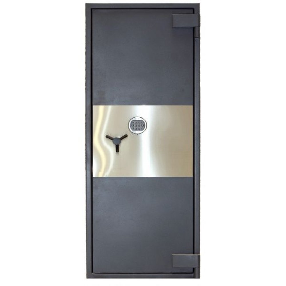- Дверь оснащена ригельным механизмом, который запирается высокосекретным электронным замком LaGard Basic (США). Замок защищён от высверливания двойной твердосплавной пластиной из марганцовистой стали. Также предусмотрена дополнительная защита от высверливания и выбивания, которая обеспечивается с помощью карбидных вставок и установки закалённого стекла с механизмом блокировки ригелей.