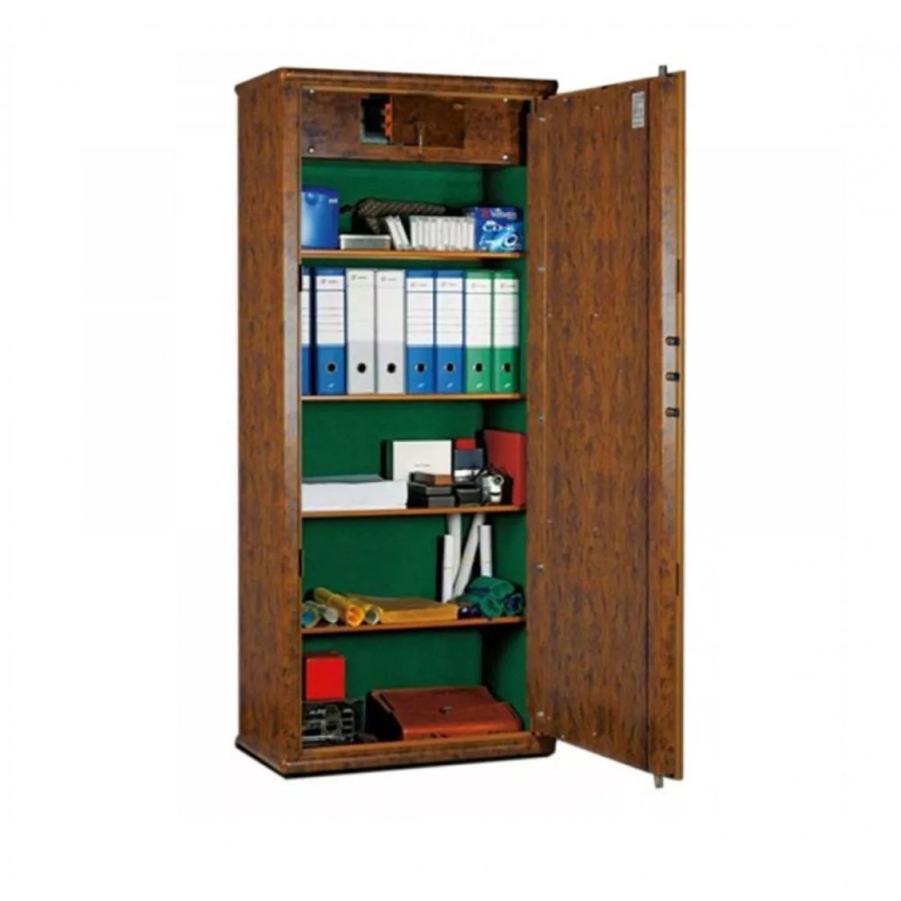 Итальянская компания METALK ориентирована в своей политике на потребителя. Экономичный и очень прочный сейф стилизованный под дерево придаст интерьеру самобытности. Внутреннее пространство сейфа мягко подсвечивается. Две уютные полочки помогут разместить все ценное. Сейф оснащен электронным кодовым замком.