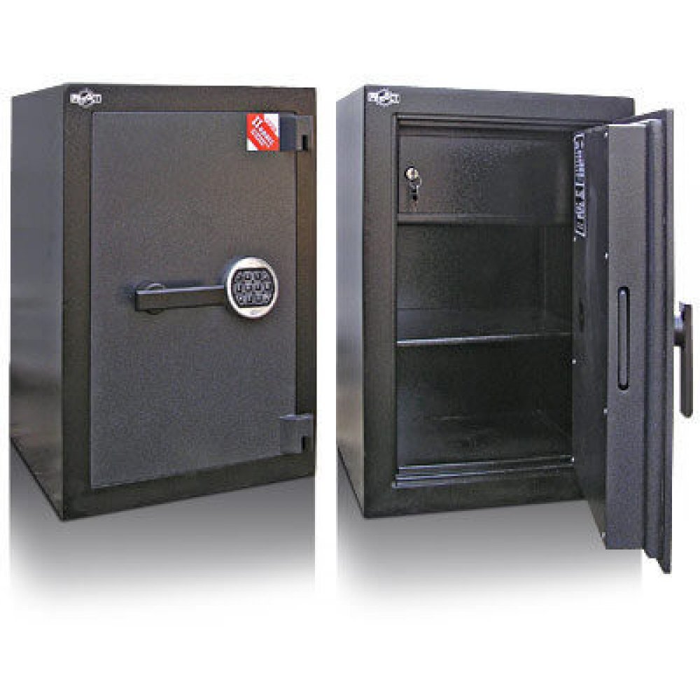 Сейфы РИПОСТ серия ВМ. Сейфы взломостойкие 2 класса "РИПОСТ" предназначены для хранения крупных денежных сумм, ценных бумаг и драгоценностей. Сейфы данной серии ВМ относятся по классу взломостойкости и общему качеству изготовления к самому высокому классу, к элите сейфов, применяемых в офисе или дома. Сейфы серии ВМ хоть и имеют сертификат второго класса, реально по степени защищенности этот класс перекрывают. Сейфы этой серии не имеют слабых мест, и, например, если потерять ключи или забыть код, то сейф нельзя открыть каким-нибудь "хитрым" способом. Сейфы серии ВМ имеют металлический двухслойный сварной корпус с заполнением бетоном специальной марки. Лицевая панель сейфа состоит из пластины холоднокатанной стали в 20 мм, затем следует заливка бетоном особой прочности с армирующими вставками, замковая система и внутренний слой стали в 2 мм. Система запирания сейфов данной серии оснащена полукруглыми ригелями оригинальной конструкции, исключающей их высверливание или взлом с помощью слесарного инструмента. Замок защищен от высверливания специальной пластиной из твердого сплава. Кроме того в замковой системе предусмотрен механизм блокировки ригелей при попытке взлома или удара. При попытке взлома все ригеля блокируются в закрытом положении. В базовой комплектации сейфы оборудованы ключевыми замками STUV (Германия), электронным или механическим кодовым M-Locks (Нидерланды).