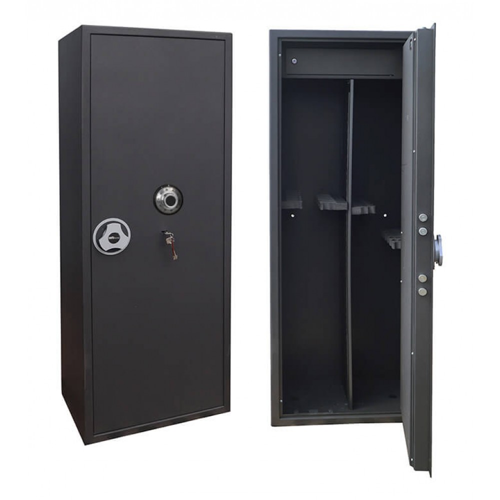 Оружейный сейф SAFEtronics серии TSS имеет подсветку внутреннего пространства. Толщина двери сейфа составляет 5мм. Корпус состоит из двух частей: внешний корпус изготавливается из металлического листа толщиной 3мм, внутренний - из металлического листа толщиной 2мм, между которыми находится несколько слоев наполнителя (SMREKOLIT), толщиной 20мм. Благодаря этому, данная серия сейфов соответствуют 1 классу защиты от взлома и обеспечивают начальную защиту от пожара.Отличительной особенностью всей линейки оружейных сейфов SAFEtronics от оружейных шкафов других производителей – полное соответствие технологии с технологией изготовления сейфов первого класса. Вследствие этого, оружейный сейф может не только контролировать содержимое сейфа от доступа посторонних лиц, но и защищать от профессионального взлома. Оружейные сейфы серии TSS оснащаются кодовыми механическими замками LA GARD (США), ключевыми замками DORMA KABA (MAUER) (Германия), электронными замками SAFEtronics (Словакия). Область замка сейфов защищена двумя пластинами из марганцовистой стали, защищающими замок сейфа от высверливания. Сейфы серии TSS сертифицированы по европейскому стандарту EuroVDS (Германия), чешскому CSN-9160010 и российскому ГОСТ Р-50862-96 - 1 классу защиты от взлома
