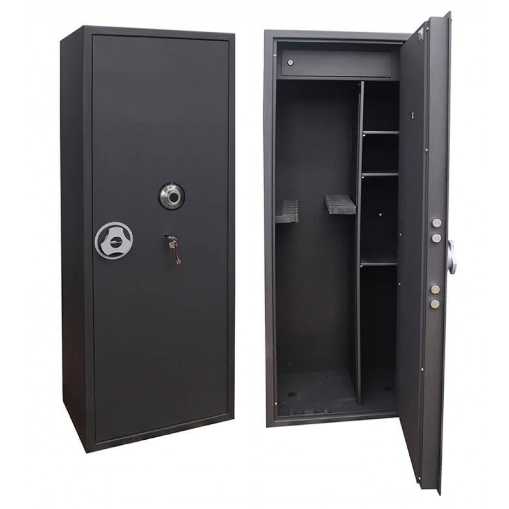 Оружейный сейф SAFEtronics серии TSS имеет подсветку внутреннего пространства. Толщина двери сейфа составляет 5мм. Корпус состоит из двух частей: внешний корпус изготавливается из металлического листа толщиной 3мм, внутренний - из металлического листа толщиной 2мм, между которыми находится несколько слоев наполнителя (SMREKOLIT), толщиной 20мм. Благодаря этому, данная серия сейфов соответствуют 1 классу защиты от взлома и обеспечивают начальную защиту от пожара.Отличительной особенностью всей линейки оружейных сейфов SAFEtronics от оружейных шкафов других производителей – полное соответствие технологии с технологией изготовления сейфов первого класса. Вследствие этого, оружейный сейф может не только контролировать содержимое сейфа от доступа посторонних лиц, но и защищать от профессионального взлома. Оружейные сейфы серии TSS оснащаются кодовыми механическими замками LA GARD (США), ключевыми замками DORMA KABA (MAUER) (Германия), электронными замками SAFEtronics (Словакия). Область замка сейфов защищена двумя пластинами из марганцовистой стали, защищающими замок сейфа от высверливания. Сейфы серии TSS сертифицированы по европейскому стандарту EuroVDS (Германия), чешскому CSN-9160010 и российскому ГОСТ Р-50862-96 - 1 классу защиты от взлома