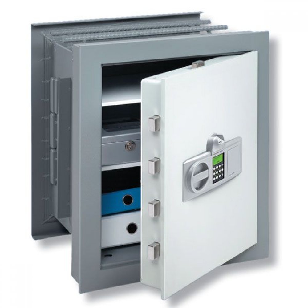 Корпус сейфа сварной, изготовлен из стальных листов и имеет конструкцию для монтирования в специальную нишу в стене. Лицевая панель двери изготовлена из стали толщиной 10 мм. На дверь встраиваемого сейфа Burg-Wachter установлен электронный кодовый замок со встроенным модулем сканирования отпечатков пальцев, замок защищен от высверливания специальной твердосплавной пластиной.