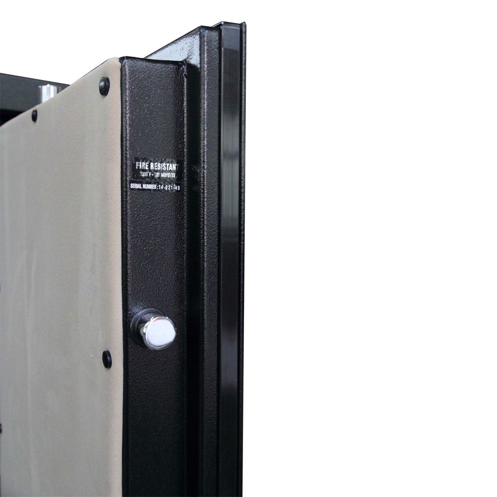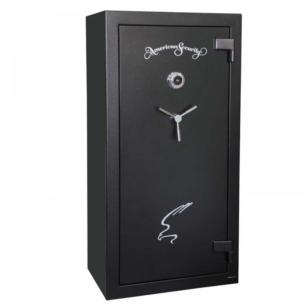 Дверь сейфа American Security YF 6032-MB оборудована высокосекретным комбинационным кодовым замком, защита замка обеспечивается трёхслойной закалённой пластиной, оборудована мощной многосторонней ригельной запирающей системой, тип запирающего механизма двери - эксцентриковый.