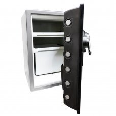 - Водостойкость: Водонепроницаемая конструкция сейфа защищает ценности от воды, которая может попасть внутрь сейфа в результате тушения пожара или протечек в здании. Компания гарантирует, что содержимое останется сухим даже в условиях наводнения.