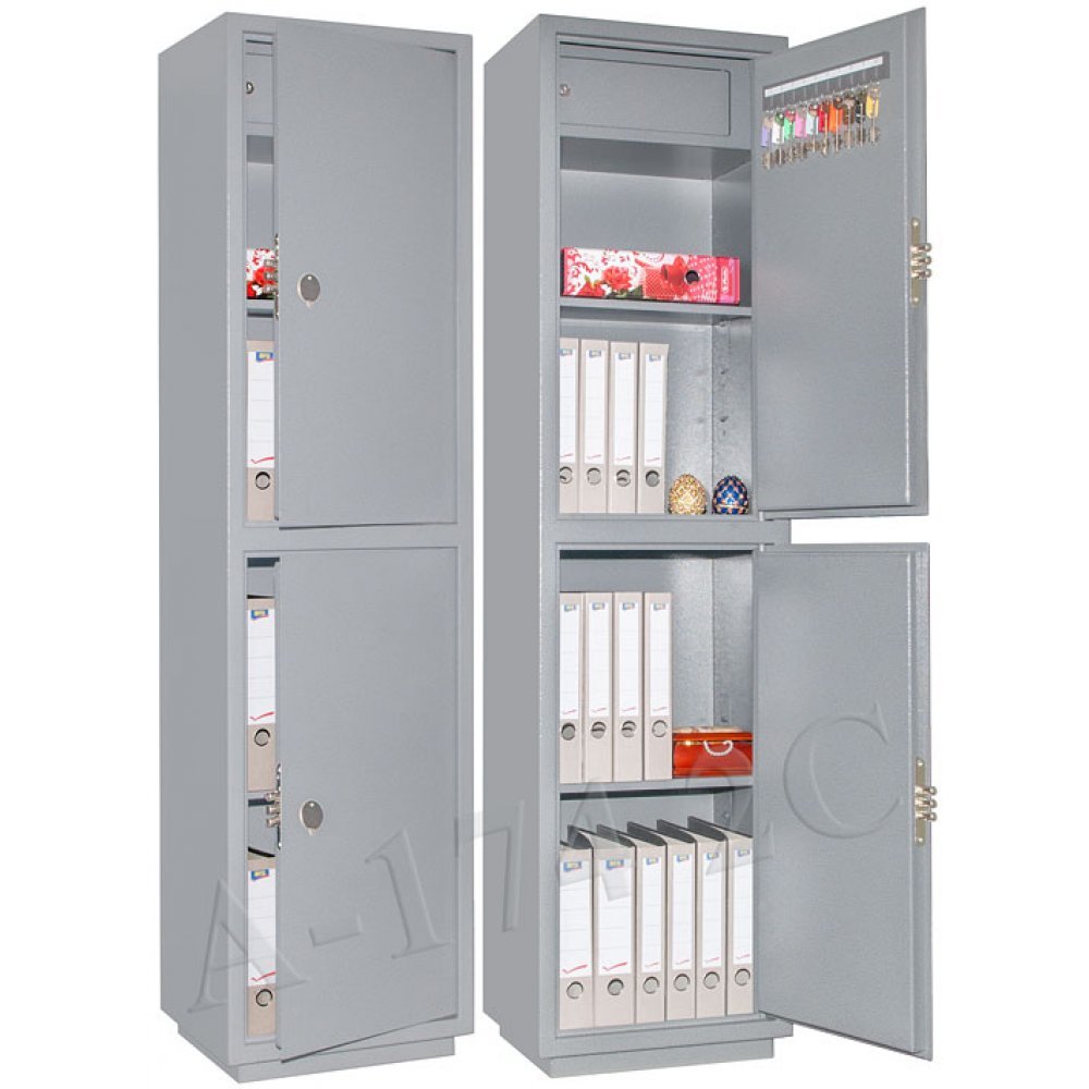 Офисный двухсекционный сейф. Сейф имеет гигиенически безопасное износо- и коррозионно-устойчивое полимерное покрытие на основе материалов производства Италии.