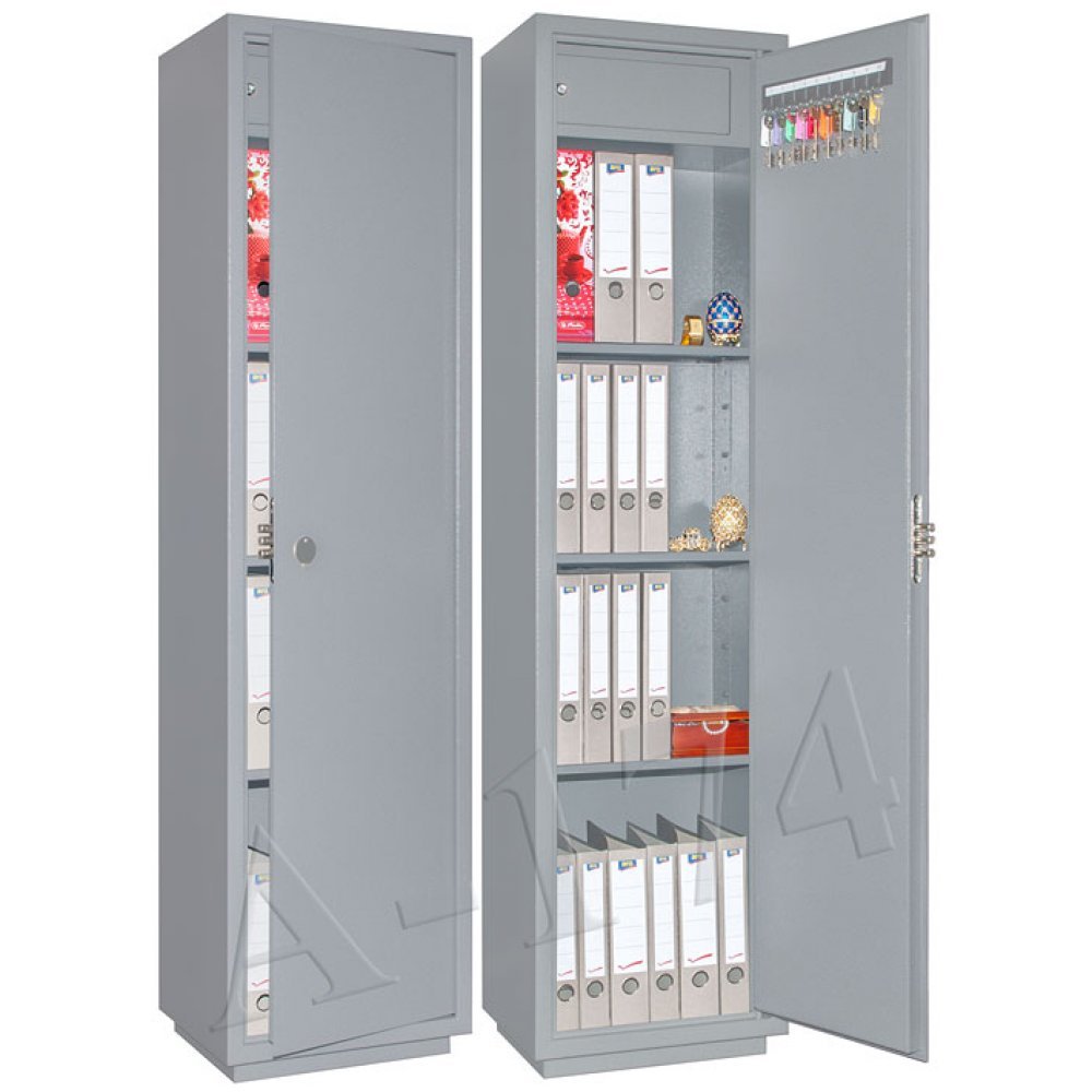 Внутри сейфа есть запираемое кассовое отделение, три съёмные регулируемые по высоте полки и удобные крючки (на внутренней стороне двери).