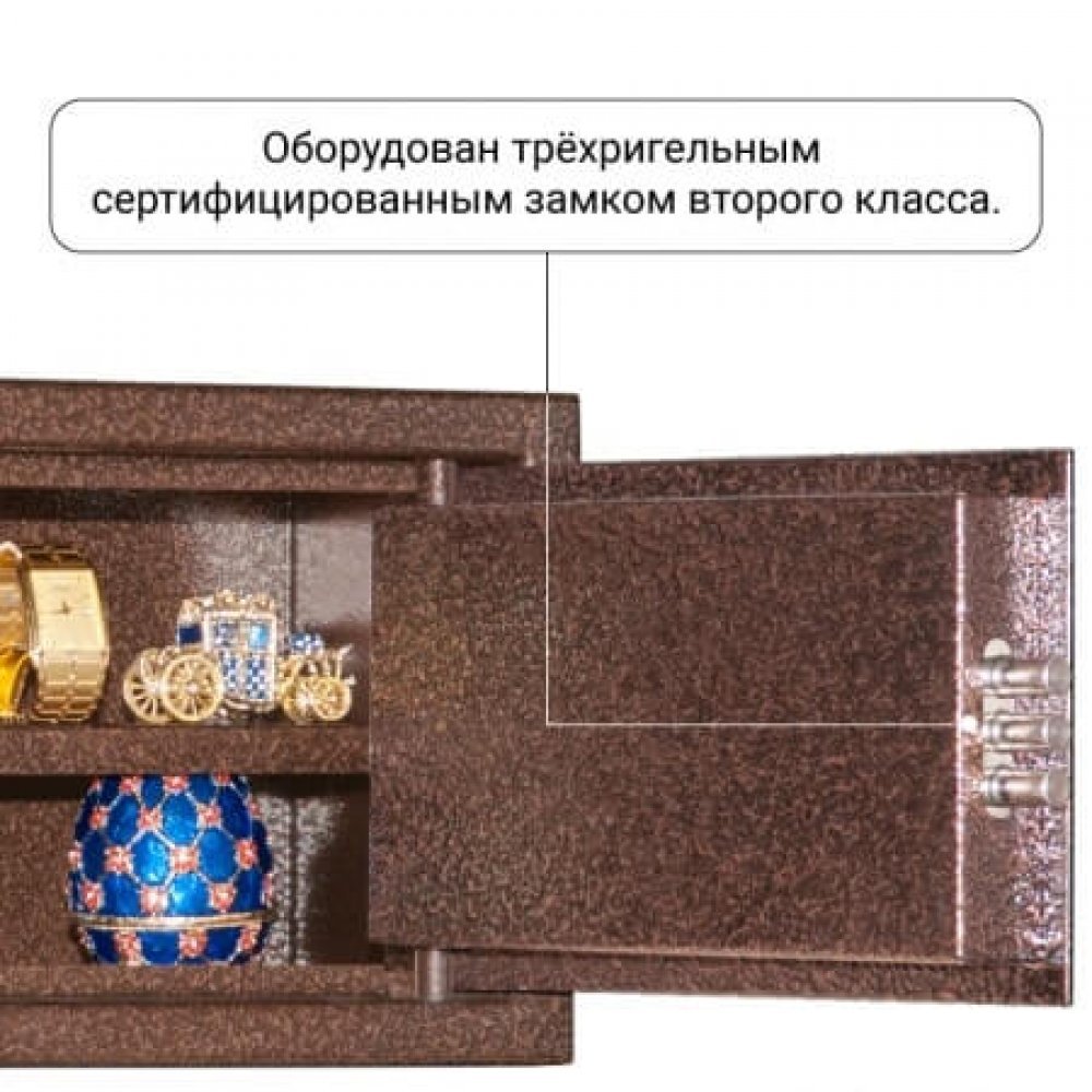 Сейф оборудован сертифицированным ключевым трёхригельным сувальдным замком 2 класса.