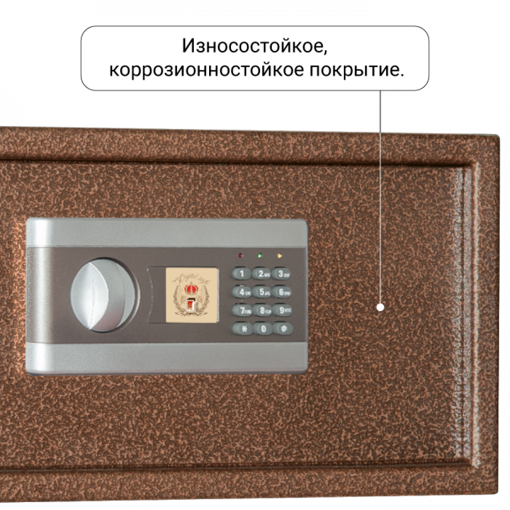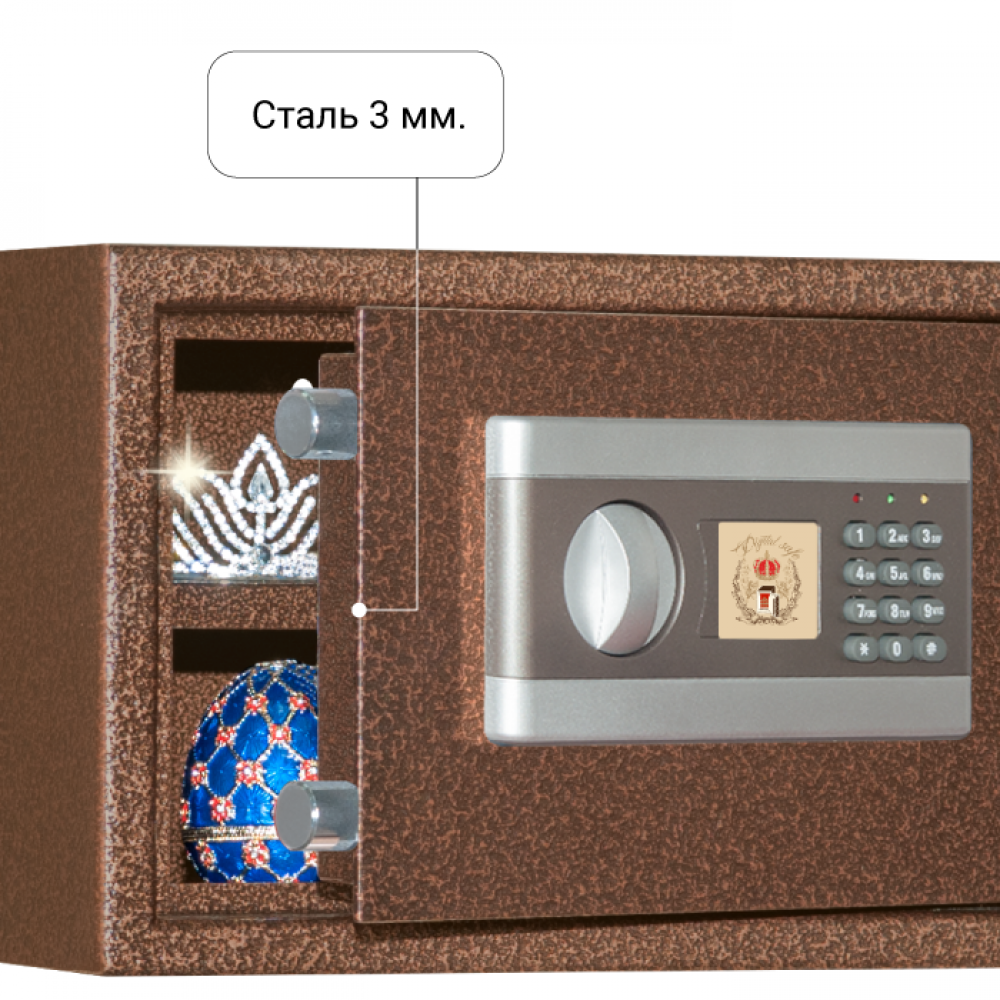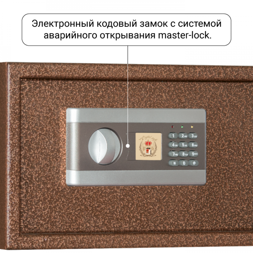 Сейф оборудован высокосекретным надёжным электронным кодовым замком.
