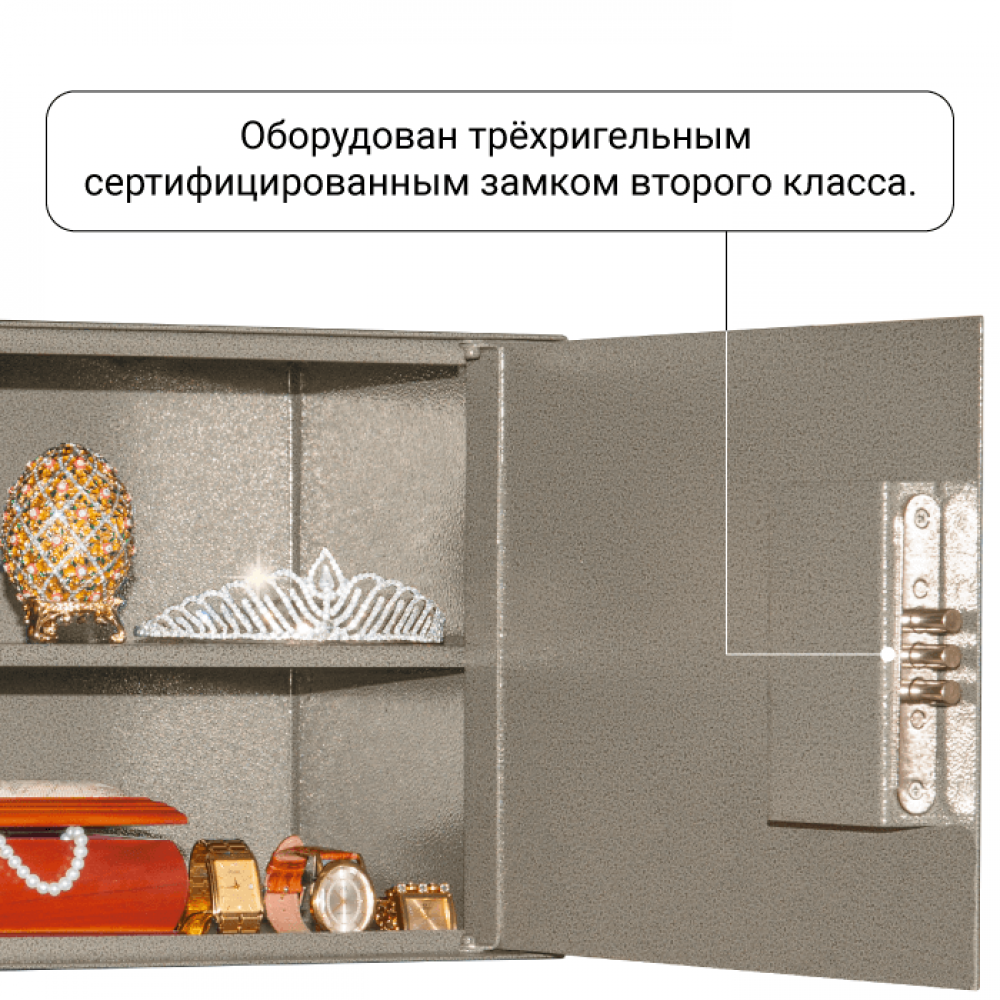 Предусмотрена возможность установки сейфа в мебель, крепления сейфа к стене, к полу, мебельной полке и т.п.