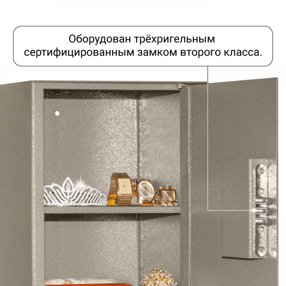 Используется в качестве мебельного, настольного, пистолетного сейфа и т.п. Удовлетворяет требованиям МВД. Сейф имеет гигиенически безопасное, износо- и коррозионно-устойчивое полимерно-порошковое покрытие.