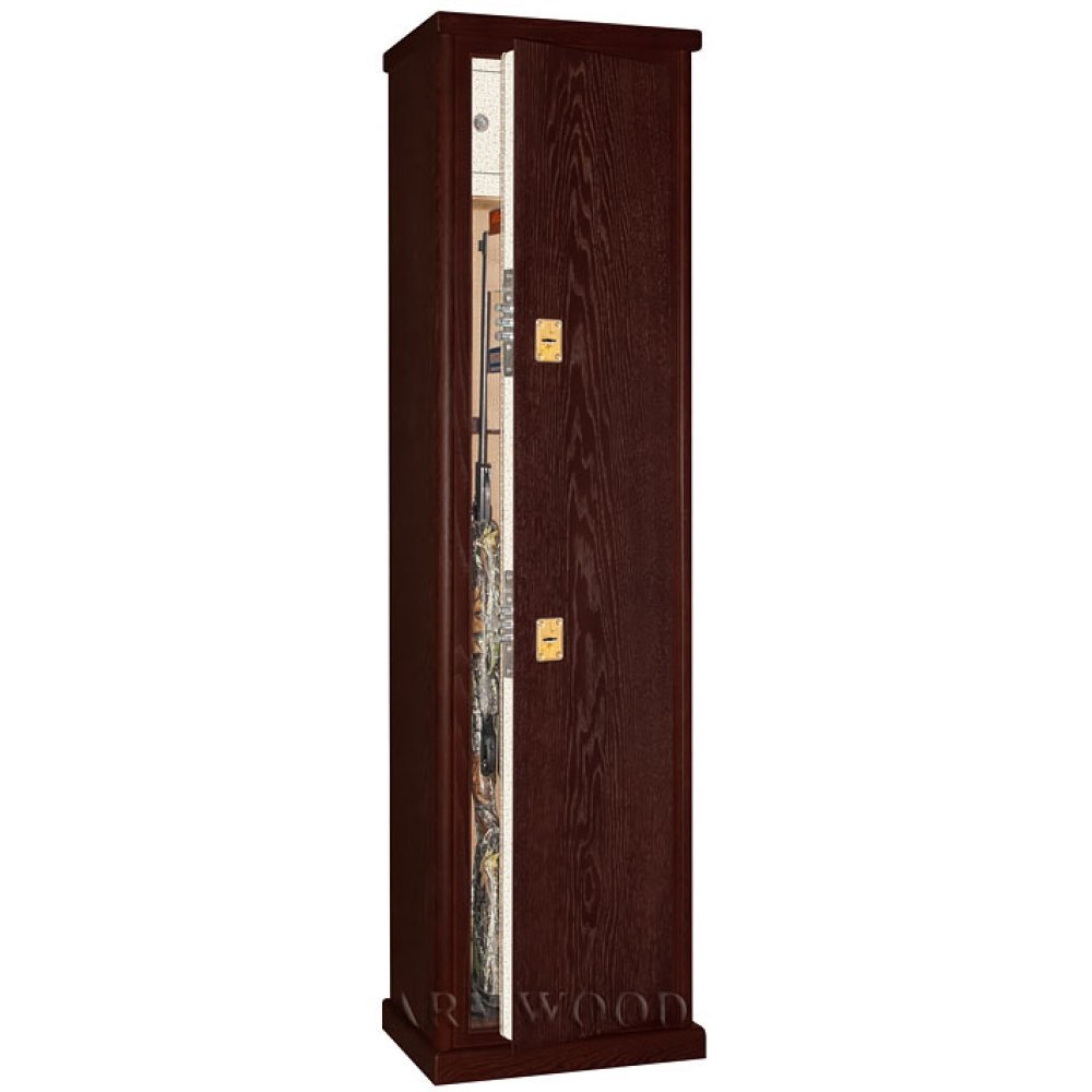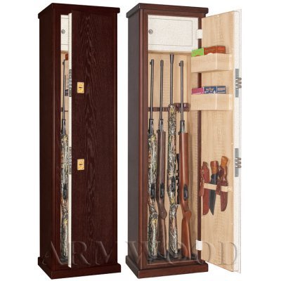 Внутри сейфа вместительное запираемое (патронное) отделение и деревянные ложементы на 5 стволов. Так же в комплект сейфа входит дополнительный роликовый ложемент, который легко устанавливается в любое нужное место сейфа (например этот ложемент можно использовать для более удобного хранения оружия с оптикой).