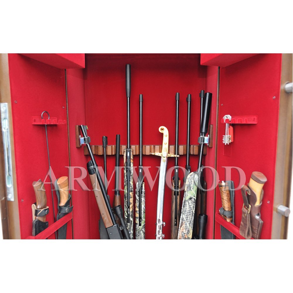 Внутри сейфа, в верхней части корпуса, есть два запираемых (патронных) отделения. На задней стенке корпуса установлен деревянный ложемент для ружей, на боковых стенках есть два роликовых ложемент-зажима (производства Германии) с регулируемой высотой установки.