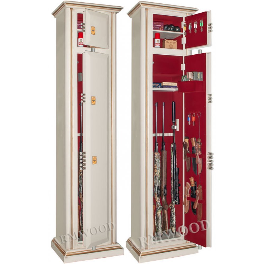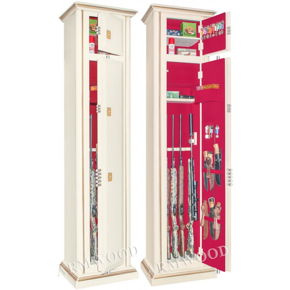 Элитный оружейный сейф с отделкой натуральным деревом. Окрашенное дерево (по каталогу RAL) с патинированием. Сейфы полностью удовлетворяют требованиям МВД к хранению оружия.
