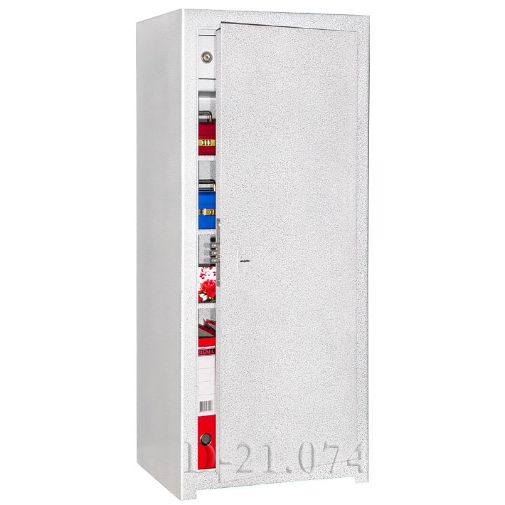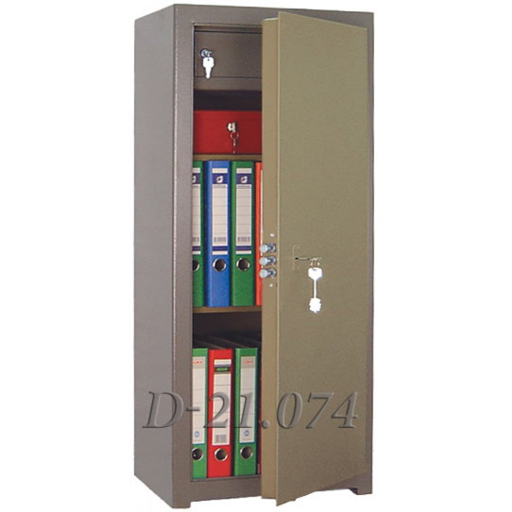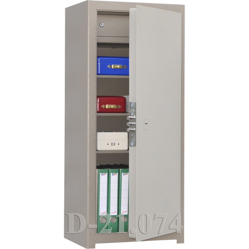 Внутри сейфа запираемое кассовое отделение и три съемные полки с регулируемой высотой установки. Помещаются папки типа Корона