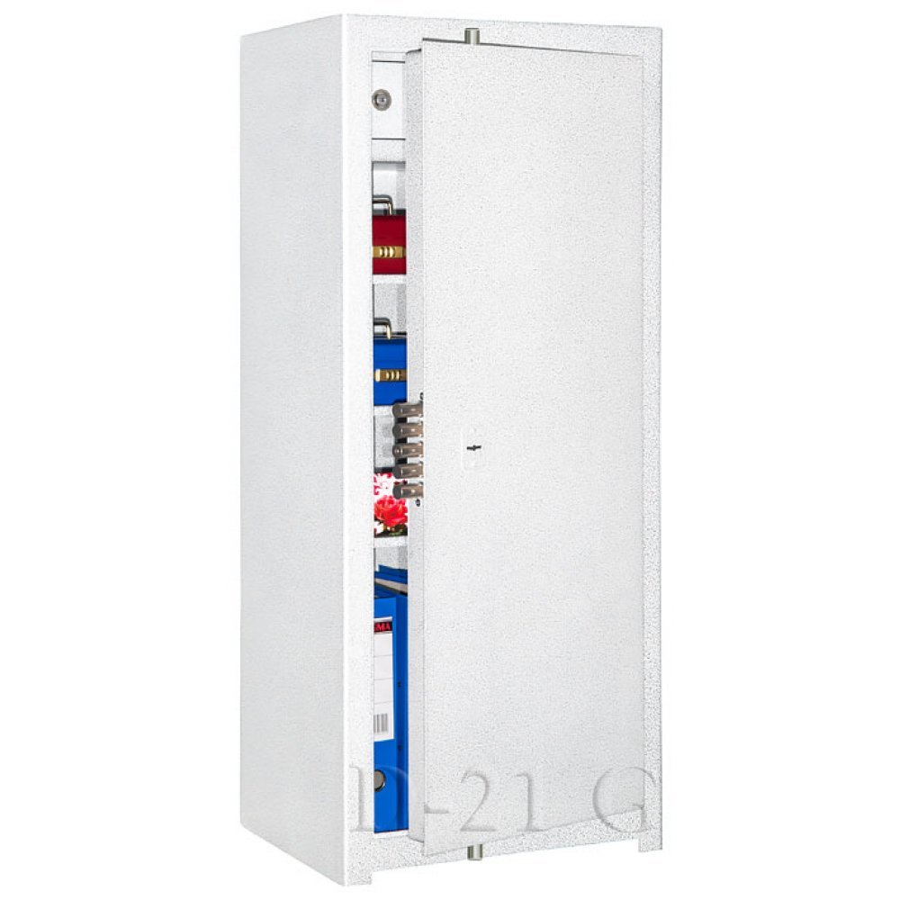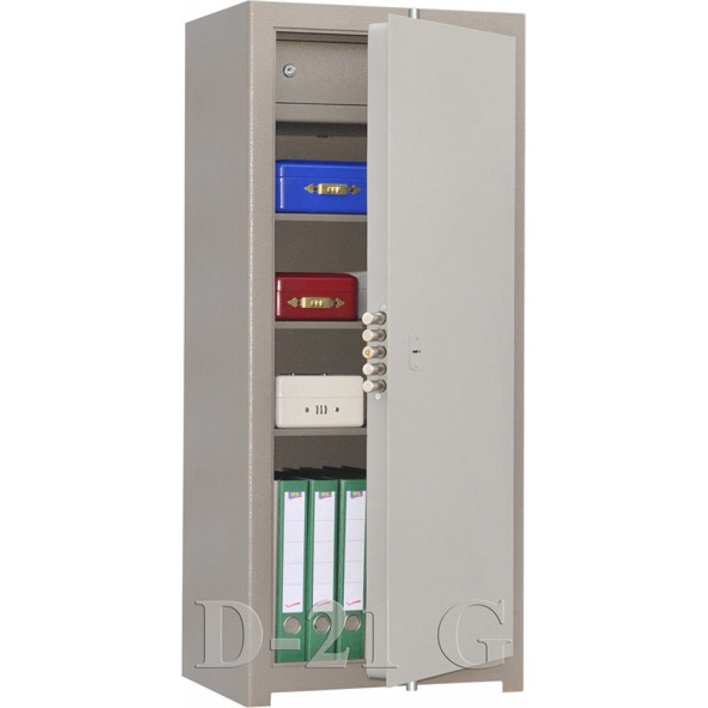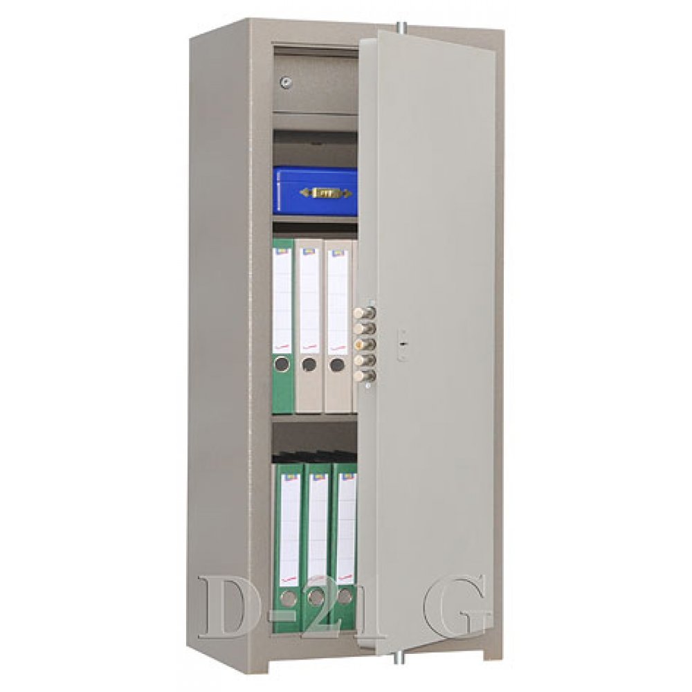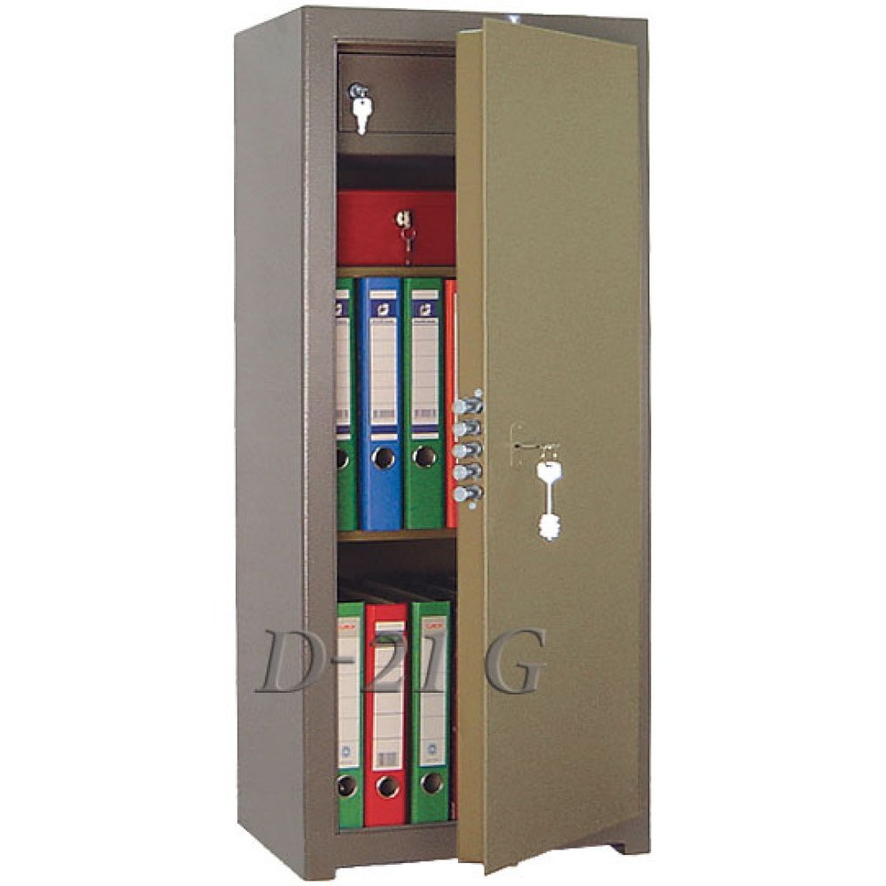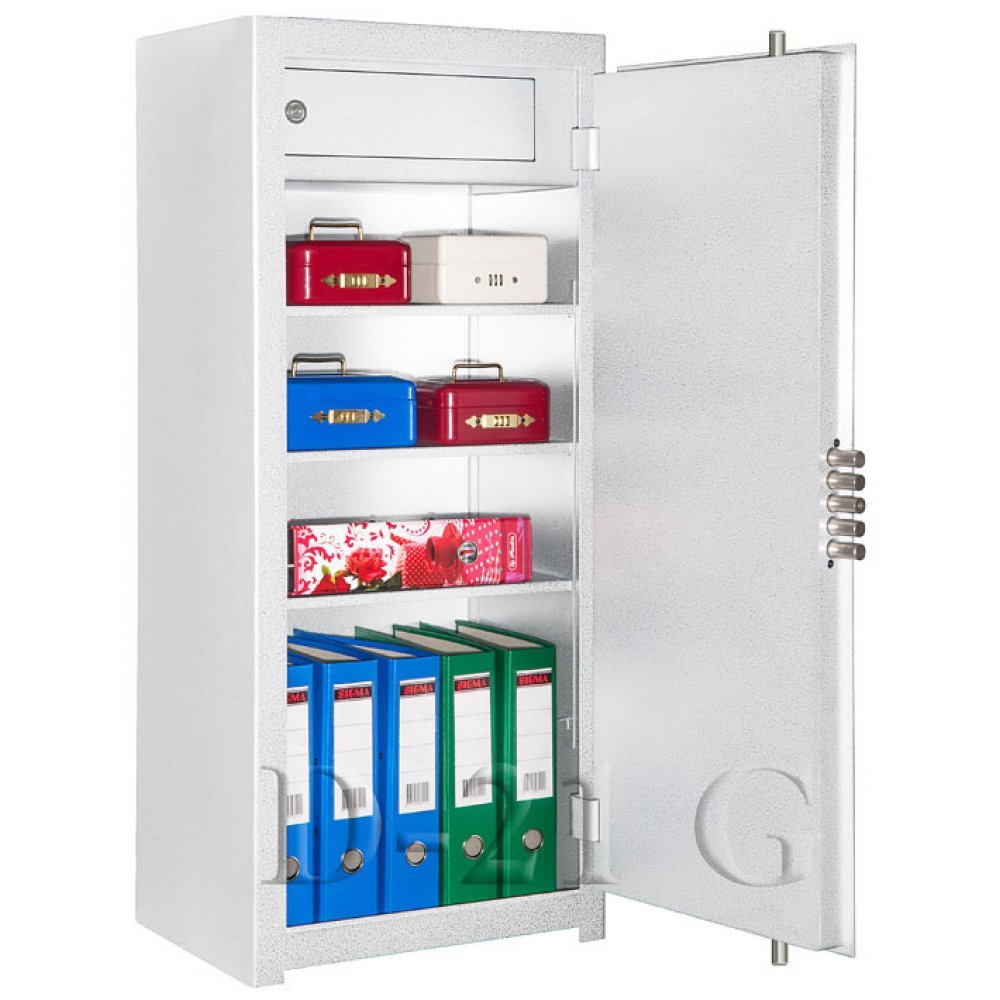 Внутри сейфа запираемое кассовое отделение и три съемные полки с регулируемой высотой установки. Помещаются папки типа Корона