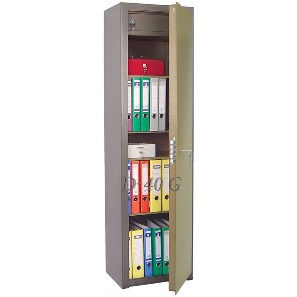 Внутри сейфа запираемое кассовое отделение, 7 съемных полок с регулируемой высотой установки и одна несъемная полка. Помещаются папки типа Корона.