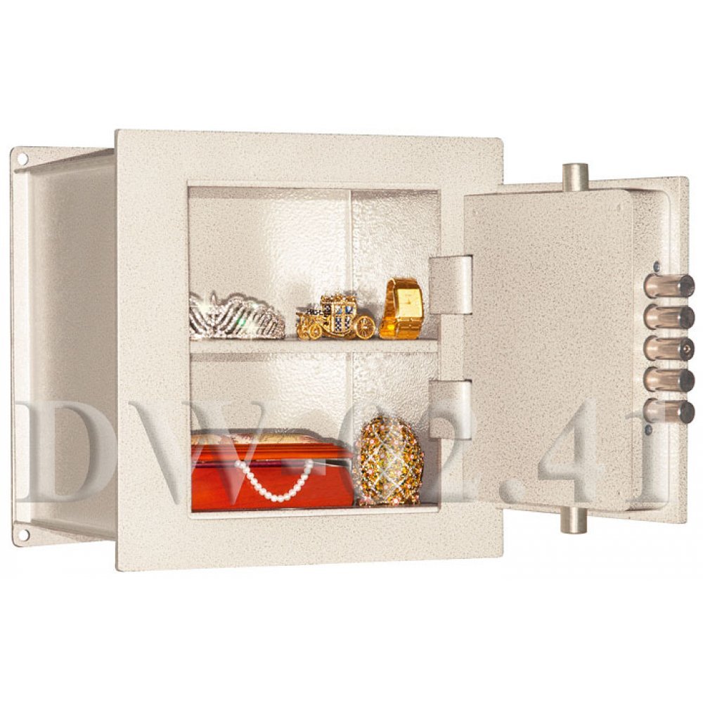 Предназначен для встраивания в стену. Сейф имеет гигиенически безопасное износо- и коррозионно-устойчивое полимерное покрытие на основе материалов производства Италии. Имеются покрытия различных цветов и структур: металлики, антики и д.р. Различные варианты цветового дизайна, например: корпус и двери имеют одинаковое покрытие, либо корпус и двери имеют покрытия разного цвета - выбирайте. На фотографии сейф с покрытием № 38/34.