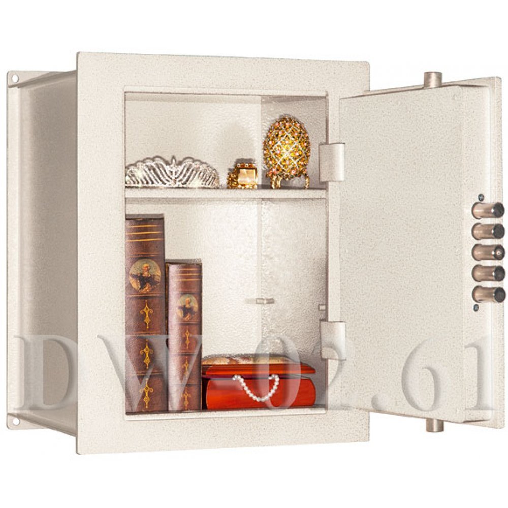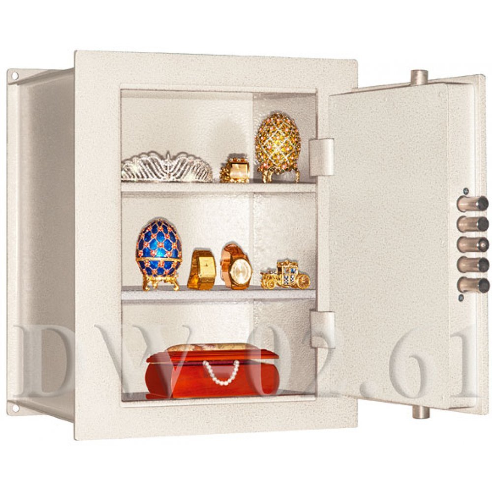 Предназначен для встраивания в стену. Сейф имеет гигиенически безопасное износо- и коррозионно-устойчивое полимерное покрытие на основе материалов производства Италии. Имеются покрытия различных цветов и структур: металлики, антики и д.р. Различные варианты цветового дизайна, например: корпус и двери имеют одинаковое покрытие, либо корпус и двери имеют покрытия разного цвета - выбирайте. На фотографии сейф с покрытием № 38/34.