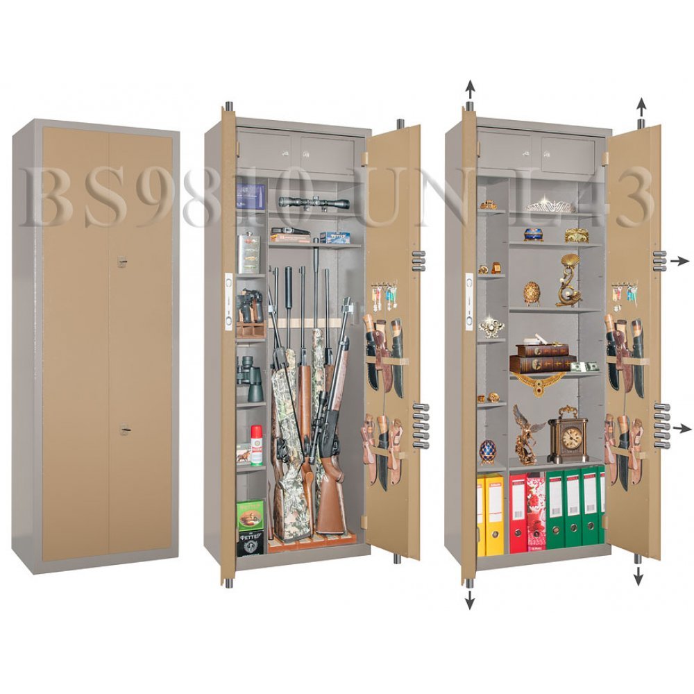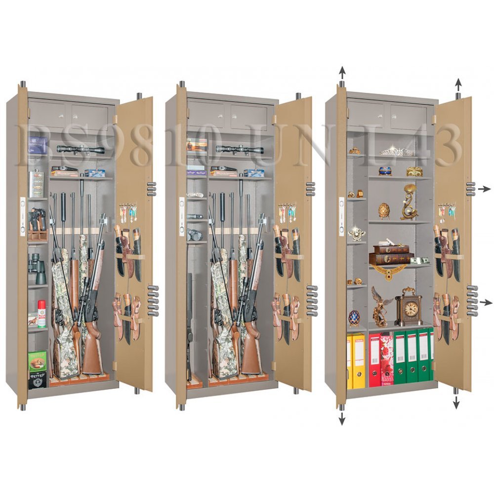 Универсальный сейф, может использоваться как оружейный сейф либо как личный или офисный. Сейф полностью удовлетворяет требованиям МВД и Росгвардии к хранению оружия физическими и юридическими лицами. Толщина металла не менее 3 мм. Оснащен двумя сейфовыми замками. Оборудован удобными ложементами для хранения оружия. Имеются анкерные отверстия на задней стенке сейфа для крепления к стене.