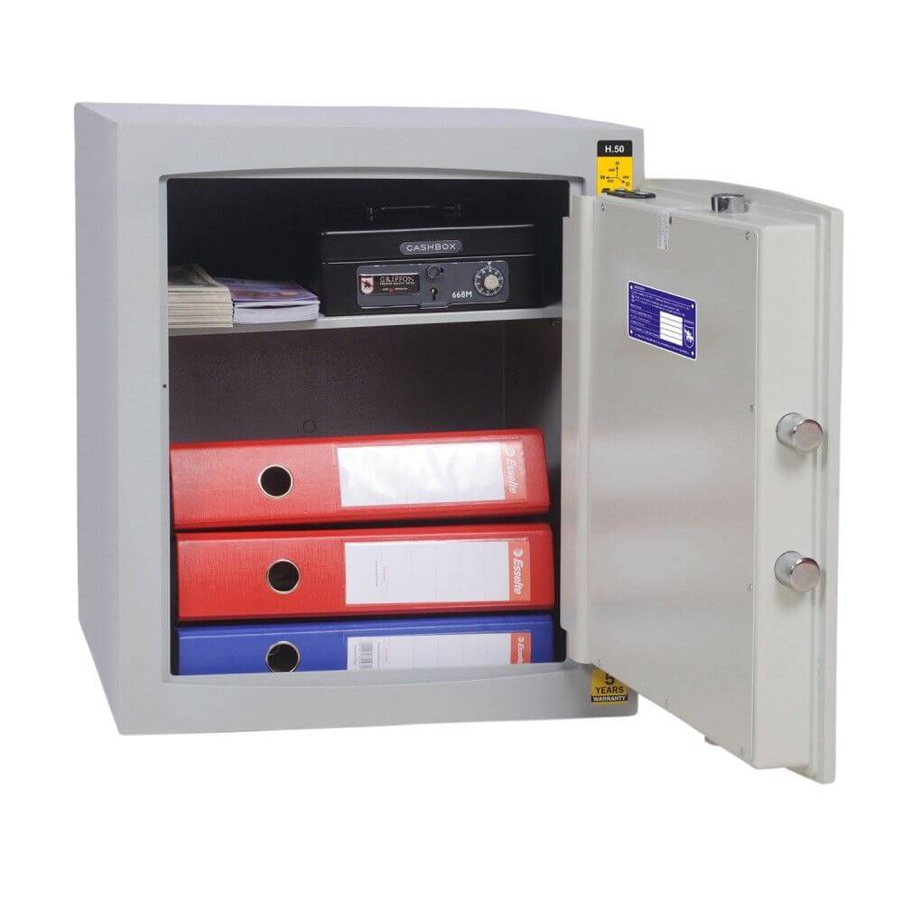 Особенность сейфов серии H – наполненность их стенок фортификационным бетоном, что позволяет многократно увеличить степень безопасности и повысить уровень защищенности от возможного взлома.