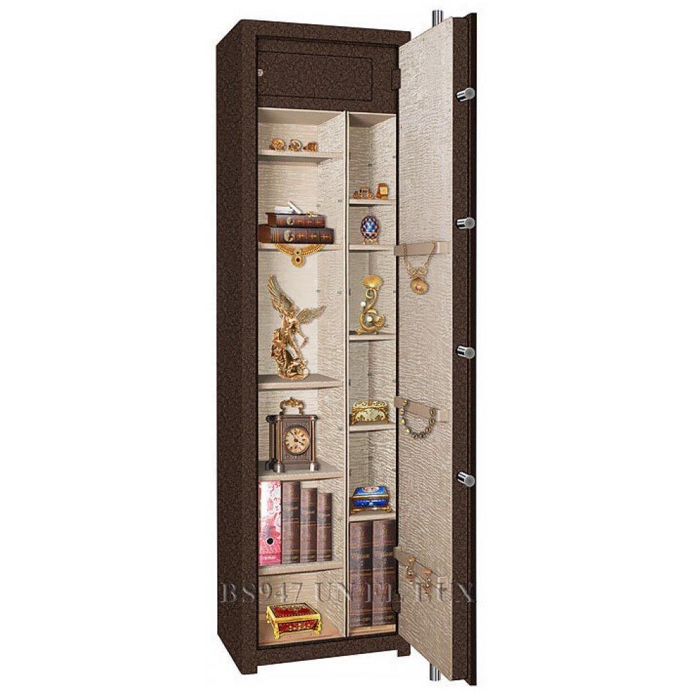 Внутри широкой области пять съёмных полок с регулируемой высотой установки, а также деревянные нижние и верхние фигурные ложементы на 4 ствола. Также в широкой области имеется роликовый ложемент-зажим (производства Германии) с регулируемой высотой установки. Этот ложемент может быть использован для хранения в широкой области пятого ствола либо для дополнительной боковой фиксации оружия с оптикой.