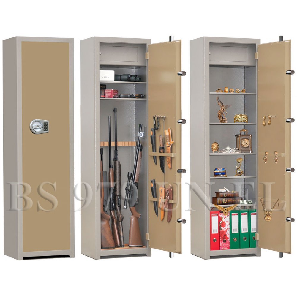Универсальный сейф, может использоваться как оружейный сейф либо как личный или офисный. Сейф полностью удовлетворяет требованиям МВД и Росгвардии к хранению оружия физическими и юридическими лицами. Толщина металла не менее 3 мм. Оснащен электронным сейфовым замком. Оборудован удобными ложементами для хранения оружия. Имеются анкерные отверстия на задней стенке сейфа для крепления к стене.