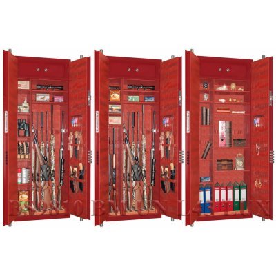 Внутри «широкой» области 5 съёмных полок и деревянные ложементы на шесть стволов. Также в «широкой» области имеются два боковых роликовых зажима с регулируемой высотой установки (для хранения в широкой области седьмого и восьмого ствола либо для дополнительной фиксации оружия с оптикой).