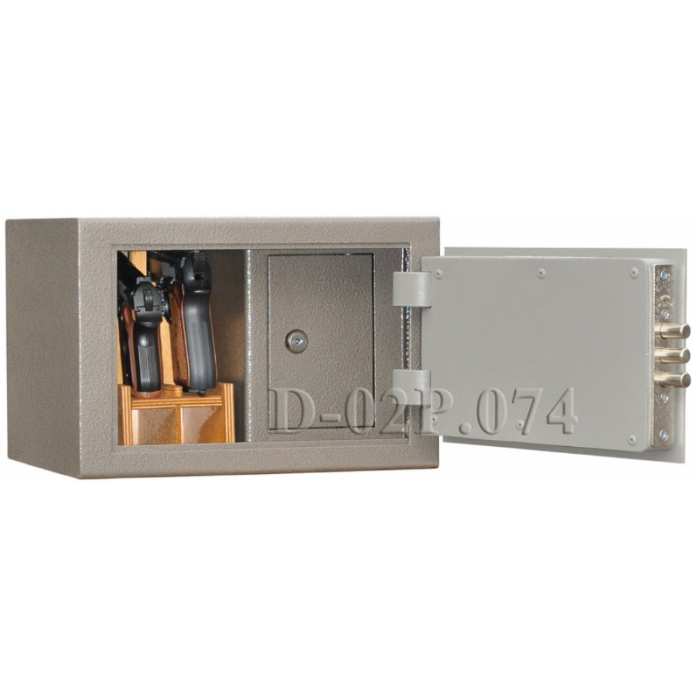 Деревянные ложементы. Для хранения пистолетов и обойм. Внутри сейфа запираемое отделение.