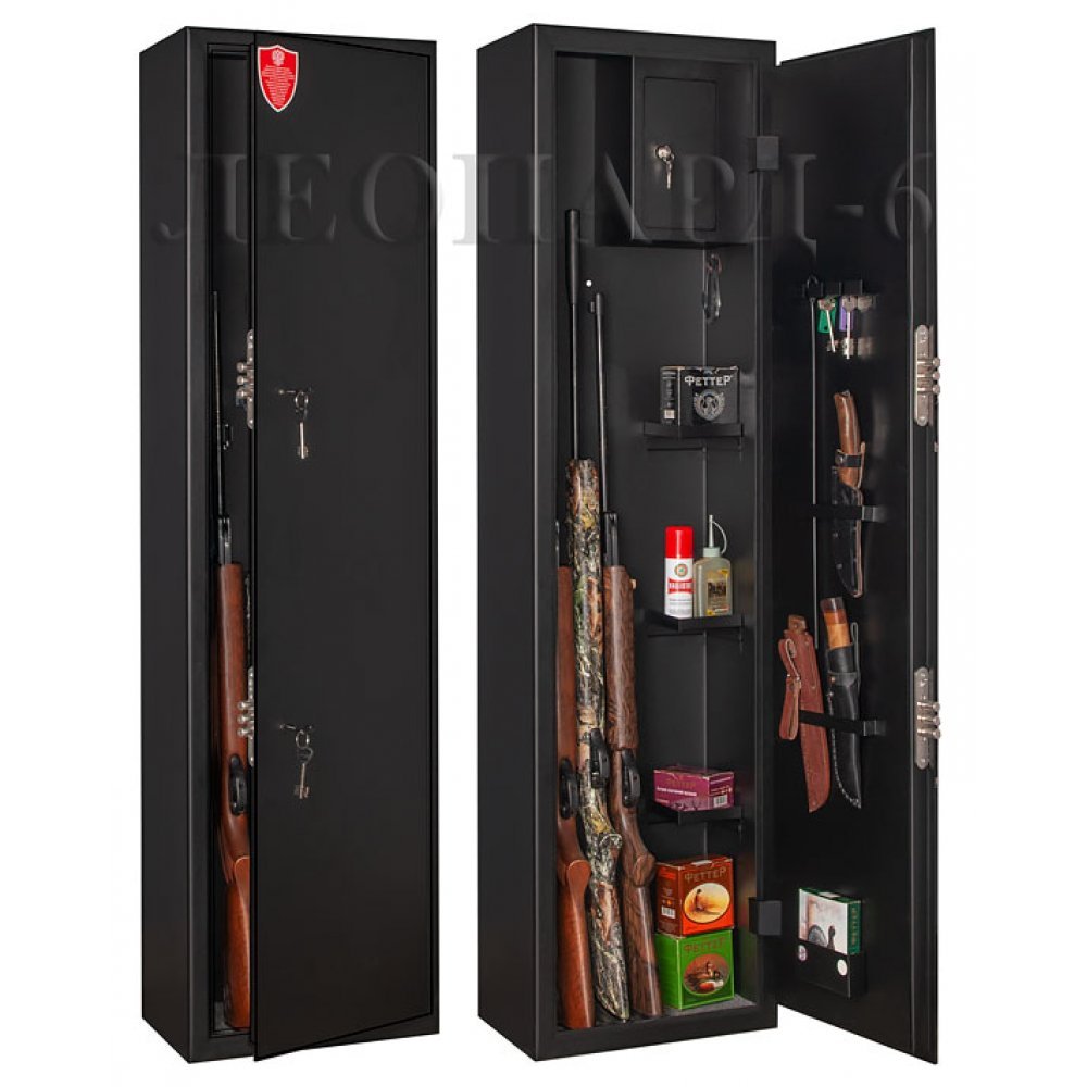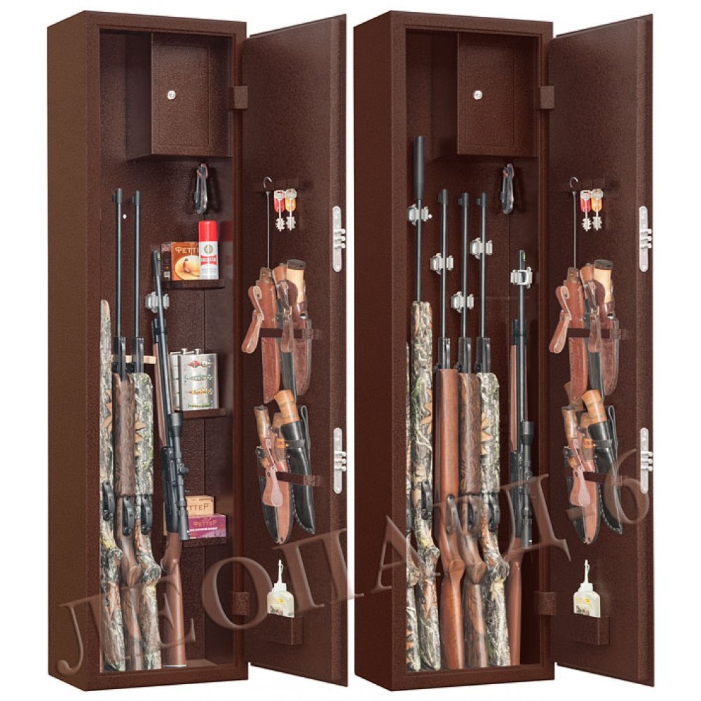 Сейф полностью удовлетворяет требованиям МВД и Росгвардии к хранению оружия физическими и юридическими лицами. Толщина металла не менее 3 мм. Оснащен двумя сейфовыми замками второго класса. Оборудован удобными ложементами для хранения оружия. Имеются анкерные отверстия на задней стенке сейфа для крепления к стене.