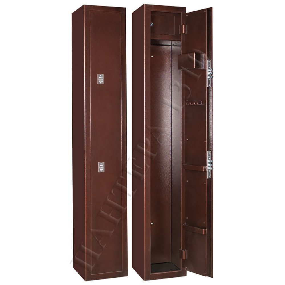 Высота хранимых стволов 1310 либо 1490мм., в зависимости от модификации - уточняйте это при заказе. Возможна комплектация этого сейфа и дополнительными ложементами, каждый из которых легко устанавливается в нужное место. Имеются полимерные ложементы, деревянные ложементы на любое количество стволов, роликовые ложементы-зажимы производства Германии и другие. Уточните это при заказе с Вашим менеджером. Сейф имеет коррозионно- и износо-стойкое, гигиенически-безопасное полимерно-порошковое покрытие на основе материалов производства Италии