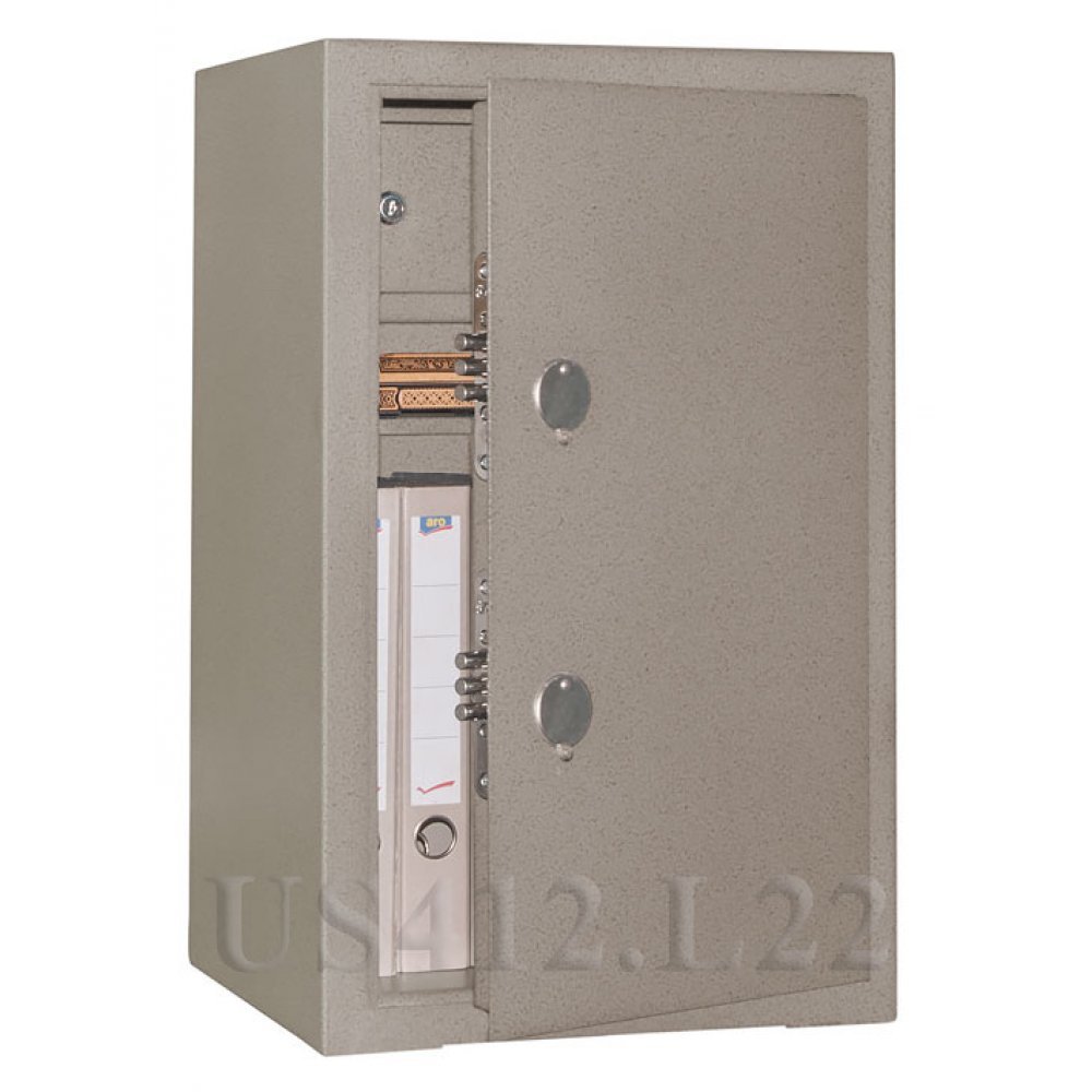 Наружная дверь сейфа оборудована двумя сертифицированными трехригельными сувальдными ключевыми замками второго класса.