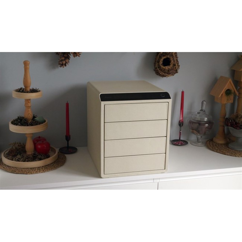 Сейф-шкатулка для ювелирных украшений - идеальное решение для хранения и драгоценностей. Сейф выполнен из металла, обтянутого высококачественной экокожей, что придает ему элегантный и изысканный вид. Сейф оснащен биометрическим замком, который открывается с помощью сканирования отпечатка пальца. Вы можете записать до 100 отпечатков в память устройства.