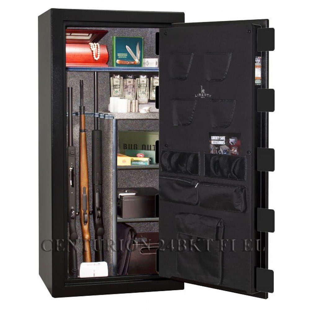 Новая улучшенная модификация 2021 года. Покрытие: Чёрный текстурированный полуглянцевый. Производство Liberty Safe and Security Products, Inc (США, штат Юта). Сейфы Liberty сертифицированы на взломостойкость и огнестойкость в США. Полностью удовлетворяют требованиям МВД. Сейфы Liberty Centurion 24BKT FI EL производятся непосредственно в США.