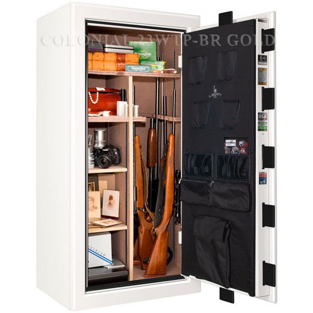 Покрытие: Жемчужно белый, автомобильный глянец. Фурнитура черный хром. Производство Liberty Safe and Security Products, Inc (США, штат Юта). Сейфы Liberty сертифицированы на взломостойкость и огнестойкость в США. Полностью удовлетворяют требованиям МВД. Сейфы изготавливаются непосредственно в США.