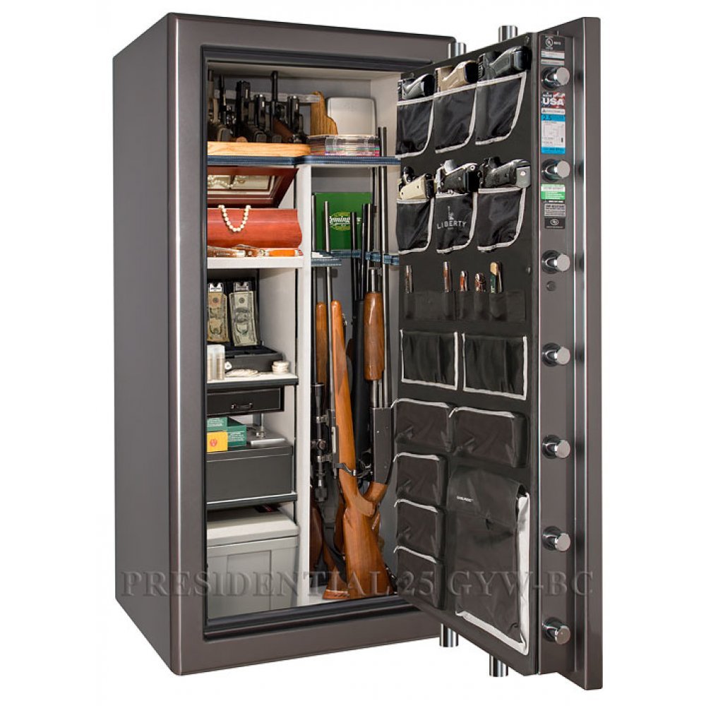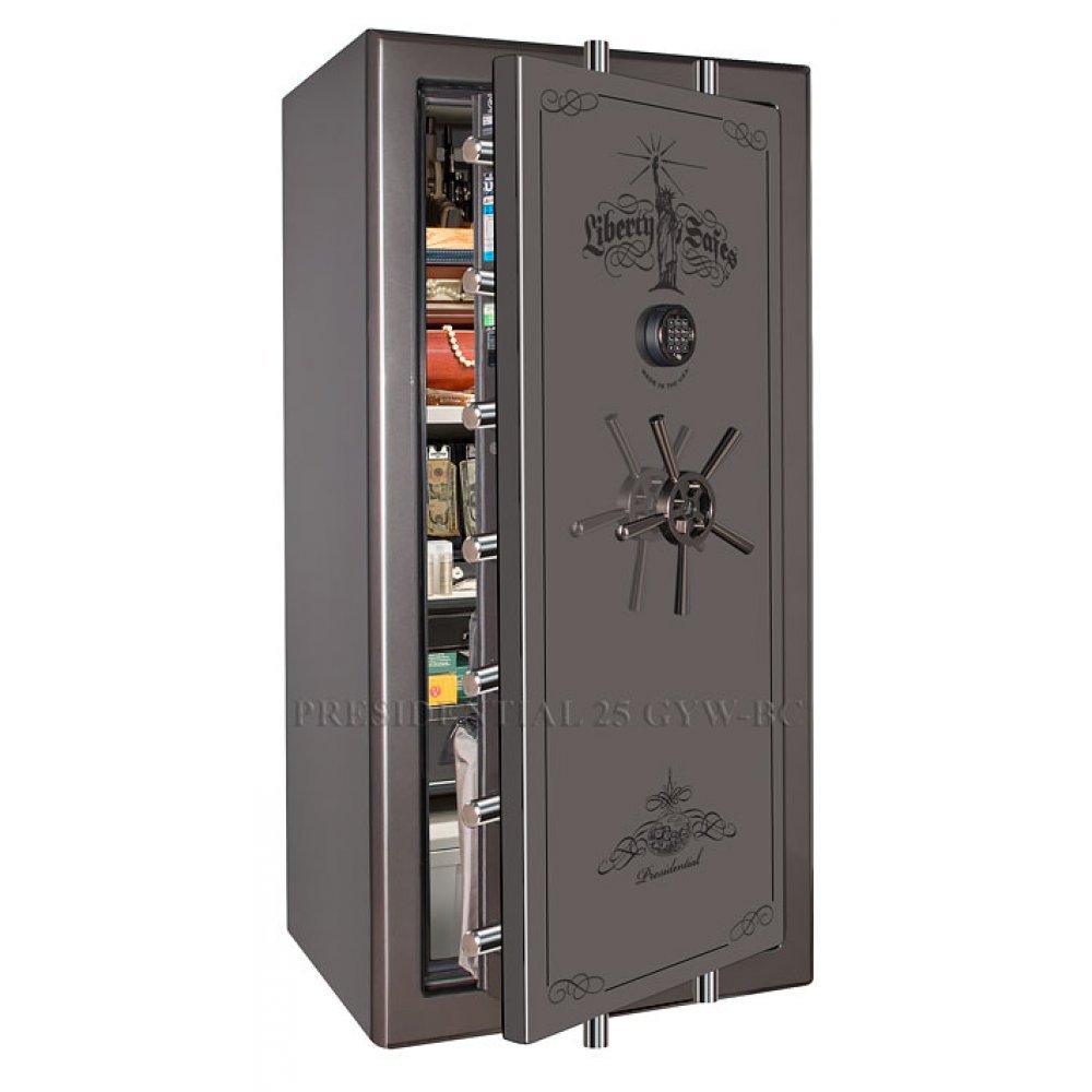 В сейфе ружья можно хранить как по одну сторону от перегородки, так и по обе стороны от перегородки. Сейфы серий Presidential и National Security Magnum имеют наивысшие показатели огнестойкости и устойчивости к взлому среди других серий сейфов Liberty.