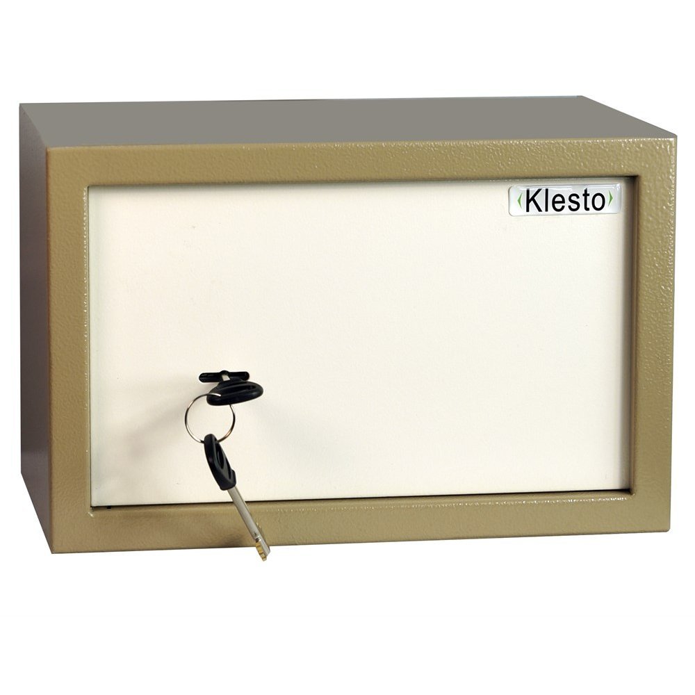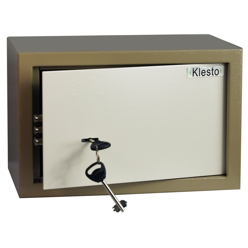 Дверь мебельного сейф Klesto 20K запирается ключевым замком с двухригельной системой запирания.