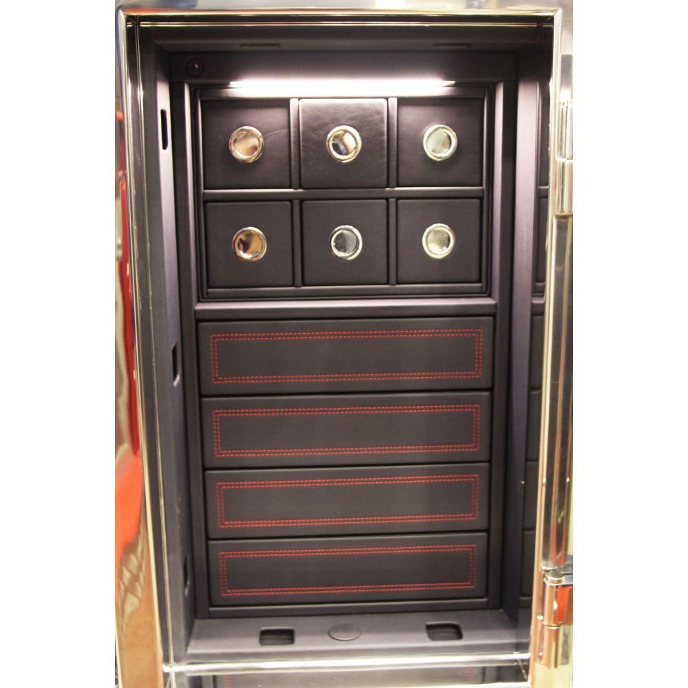 Внутреннее наполнение сейфа отличают изысканность и стиль. SANKT GALLEN 40201 CHROME оснащен 4 выдвижными и 6 скрытыми ящичками с отделкой из натуральной кожи и алькантары и 6 вотчвиндерами для автоматического подзавода люксовых часов. «ISS» гарантирует, что ваши ценности будут храниться в атмосфере роскоши и безопасности.