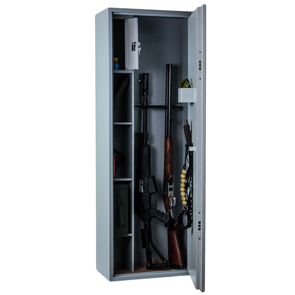 Металлический оружейный шкаф TakTika 3014 – идеальный вариант хранения до пяти ружей с дополнительными аксессуарами. Имеет запираемый на ключ встроенный ящик под патроны, съемный карман для аксессуаров, сварную скобу для инвентаря. Оружейный шкаф разделен сварной перегородкой. В левой части шкафа отделение с регулируемыми по высоте съемными полками. В правой части шкафа пространство для хранения ружей. Предусмотрены отверстия для крепления к полу и стене. Шкаф укомплектован съемными резиновыми держателями, что позволяет крепко зафиксировать ствол ружья исключая смещение оружия внутри шкафа. Мягкий коврик позволит аккуратно и бережно устанавливать ружье без риска повредить приклад. Дверь усилена металлическим коробом, который не только закрывает замки, но и обеспечивает дополнительную жесткость конструкции, а так же позволяет перевешивать дверь справа налево. Максимальная длина оружия, размещаемого в сейфе - 1395 мм. Высота от пола до трейзера - 1100 мм. Шкаф покрашен износостойкой порошковой краской.