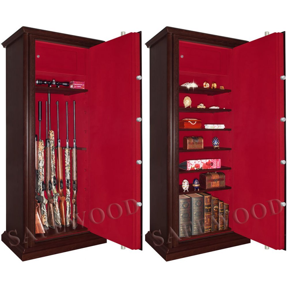 Сейфы Safewood изготавливаются с различными вариантами внешней и внутренней отделки. Внутренняя поверхность сейфа Safewood 117T EL Flock имеет мягкое покрытие флокированым бархатом. Отличительной особенностью данной модели является то что это универсальный сейф который можно использовать как оружейный сейф, так и как офисный сейф.
