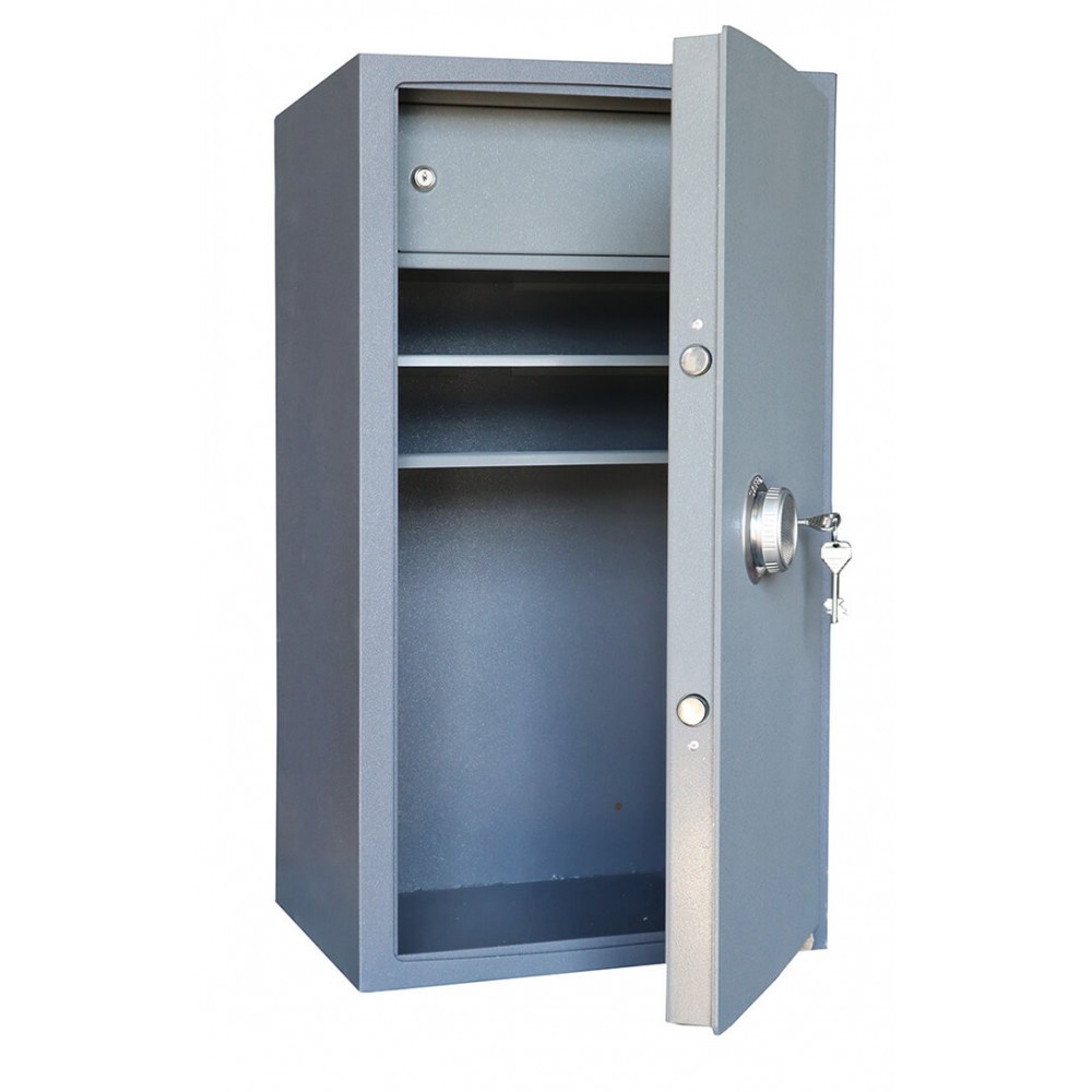 Сейф предназначен для хранения документов дома и в офисе. Взломостойкий сейф 0 класса. Толщина двери составляет 5мм. Задняя и боковые стены из стали толщиной 2мм. Взломостойкие сейфы оснащаются ключевыми замками MAUER (Германия). Сейф оснащен 3-х сторонней ригельной системой запирания. Сейф может быть закреплен к полу или стене. Полка регулируется по высоте. Сейф имеет внутреннее, запирающиеся кассовое отделение (трейзер).