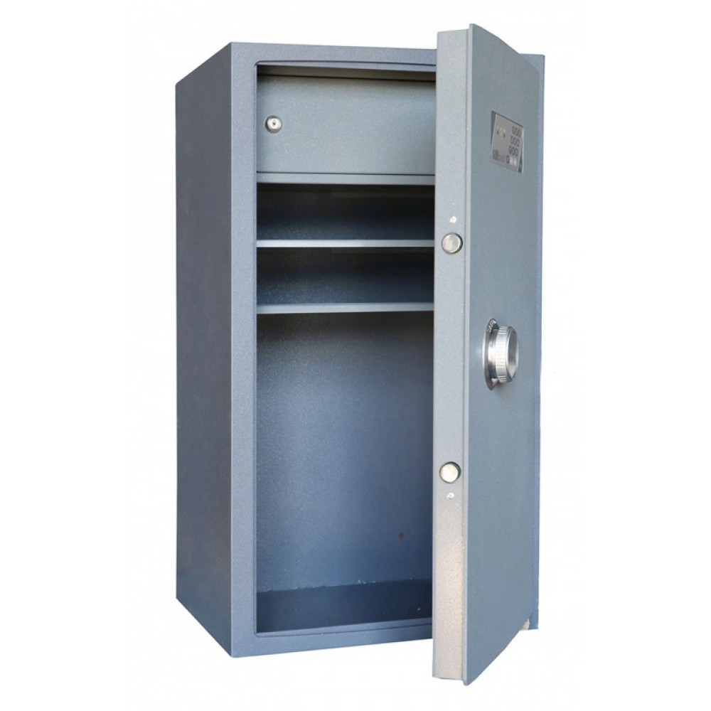 Сейф предназначен для хранения документов дома и в офисе. Взломостойкий сейф 0 класса. Толщина двери составляет 5мм. Задняя и боковые стены из стали толщиной 2мм. Взломостойкий сейф оснащается электронным замком Сейфтроникс с выводом под питание. Сейф оснащен 3-х сторонней ригельной системой запирания. Сейф может быть закреплен к полу или стене. Полки регулируются по высоте. Сейф имеет внутреннее, запирающиеся кассовое отделение (трейзер).