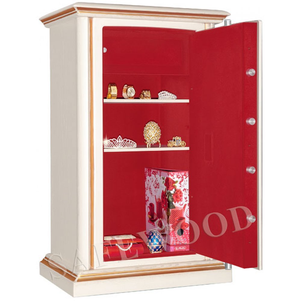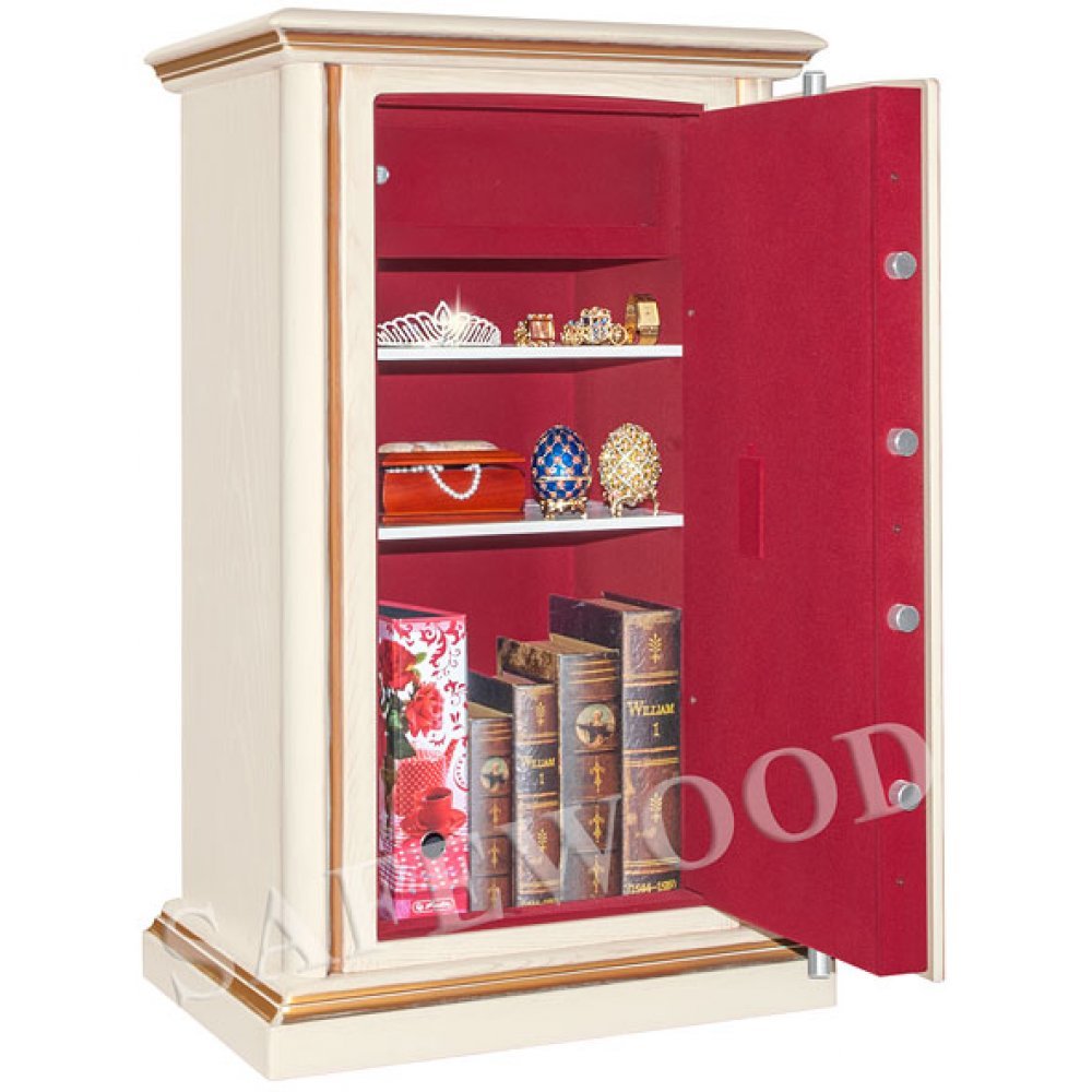 Элитный взломоогнестойкий сейф с отделкой натуральным деревом. Окрашенное дерево (по каталогу RAL) с патинированием. Вся внутренняя поверхность сейфа имеет престижное мягкое покрытие флокированием бархатом. Сейф сертифицирован на устойчивость к взлому – 1 класс. Умеренная огнестойкость – приблизительно 20Б. Корпус имеет двойные стальные стенки, межстеночный наполнитель – бетон. Металлические детали сейфа имеют гигиенически-безопасное, коррозионно-стойкое полимерно-порошковое покрытие на основе материалов производства ЕС. В отличие от других сейфов с отделкой деревом, сейфы Safewood являются Взломоогнестойкими сейфами.