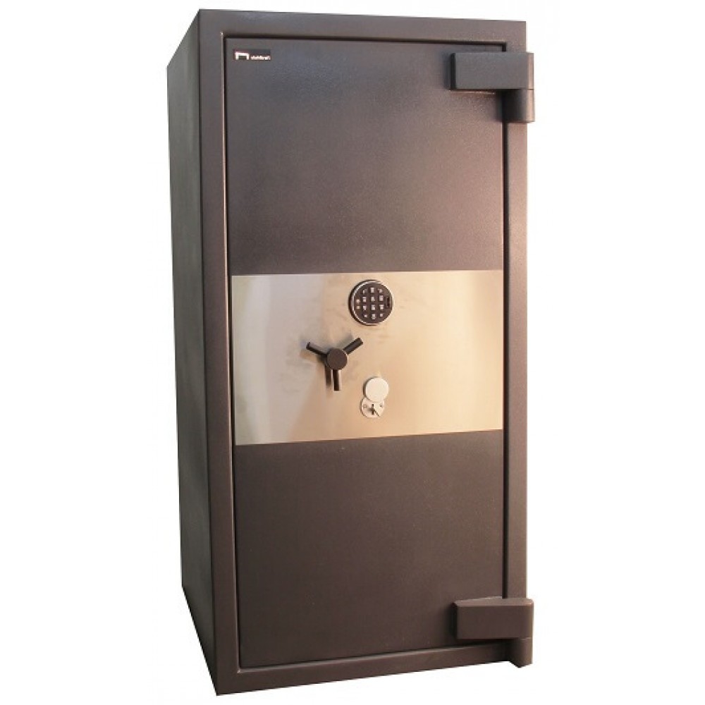 - Стенки и дверь сейфа имеют уникальную многослойную структуру, состоящую из 2 запатентованных частей DDB (Double Duty Barrier), барьер двойной плотности, состоящий из стали, композитного материала и фибробетона. Вторая часть TDR Matrix ( Touch and Drill Resistant) матрица защиты от газовой резки и сверления,состоит из специального алюминиевого сплава и кристаллов корунда (твердость 9+ по шкале Мооса, тверже только алмаз).